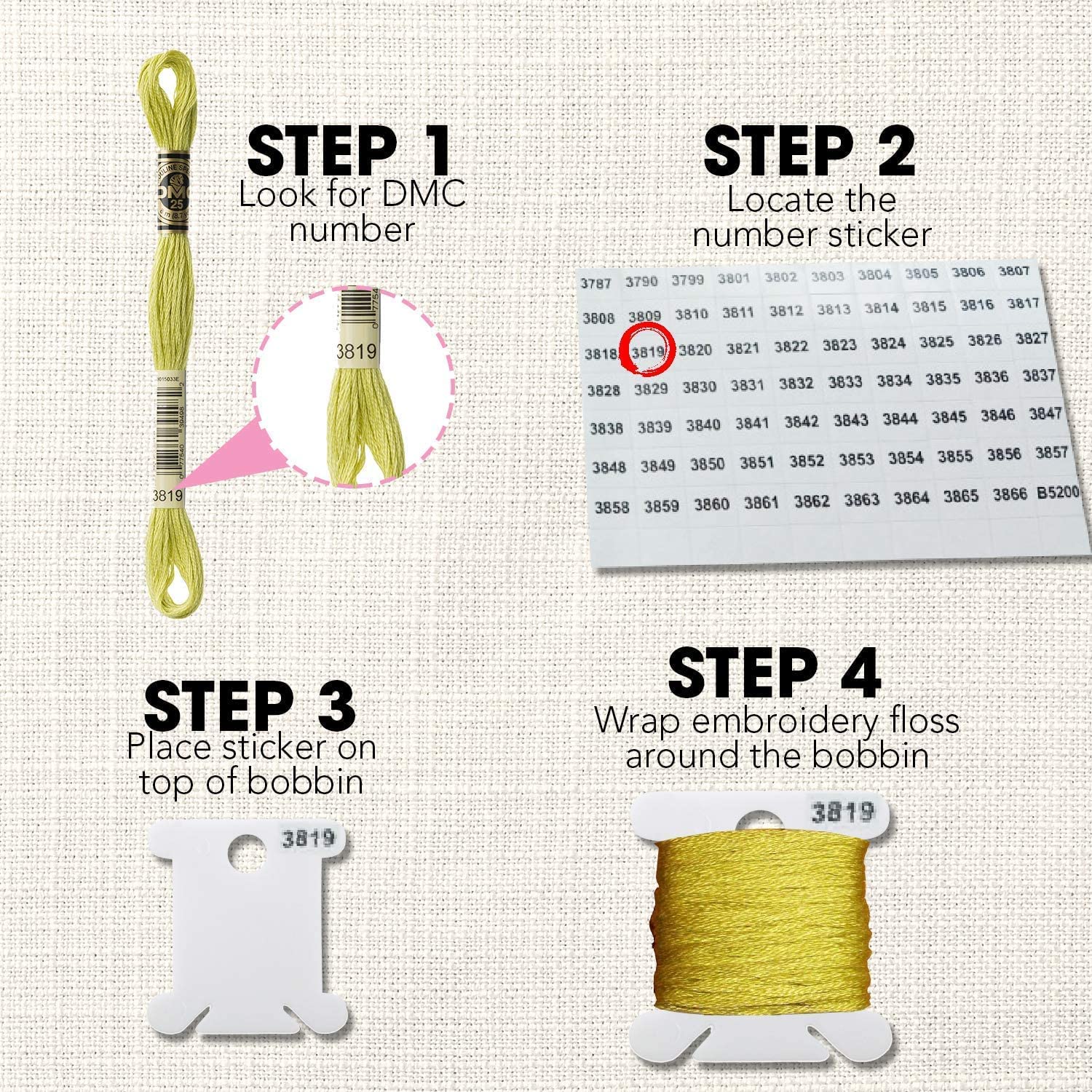 - 2 kinds Number Stickers To Customize Your Own Floss Bobbins --- 1 pcs includes 500 Labels, Pre-Printed With All 464 Solid And Variegated Color Numbers and 1 pcs blank stickers