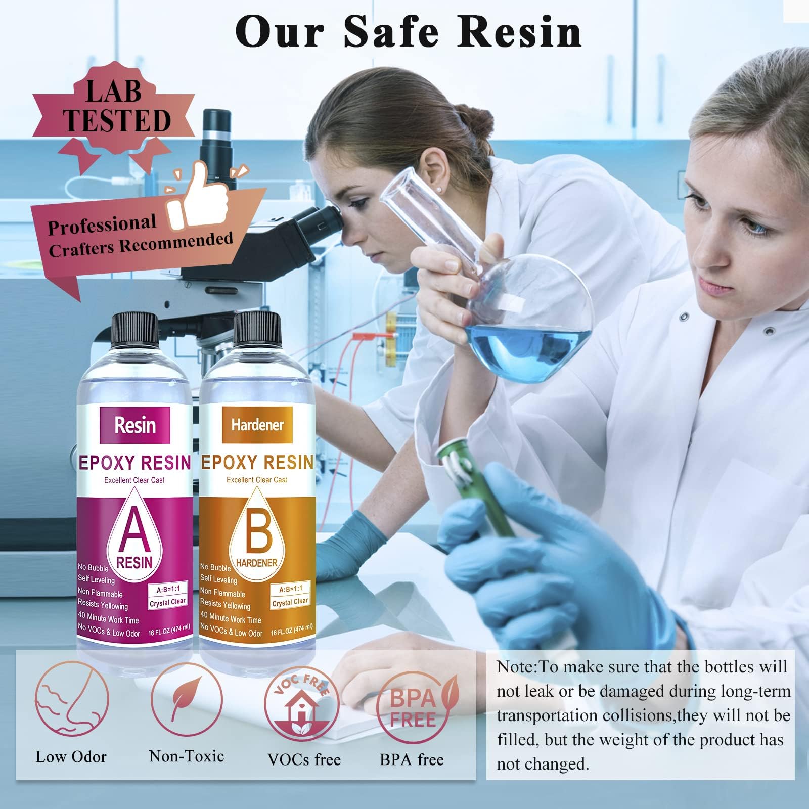 - Safe and Odorless: Our Resin Epoxy is specially formulated for ARTISTS. The 2 part epoxy Crystal Clear & Non-Toxic. Naked Zero VOCS and Odorless, BPA absent, Non-flammable and FDA food safe for use on counter tops, cutting boards, tableware and other items in the kitchen.