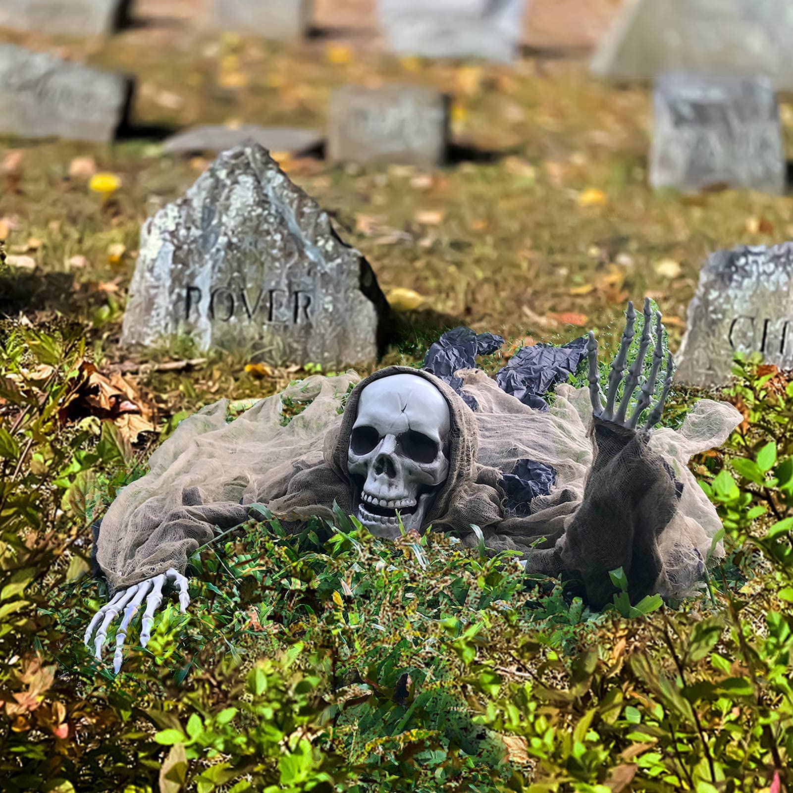 - Flexible Design: The arms and mandible can be adjusted to various startled positions at will. Bring spooky fun to your Halloween party with this Halloween skeleton groundbreaker that appears to be breaking through the ground in your yard to set the perfect horror scene
