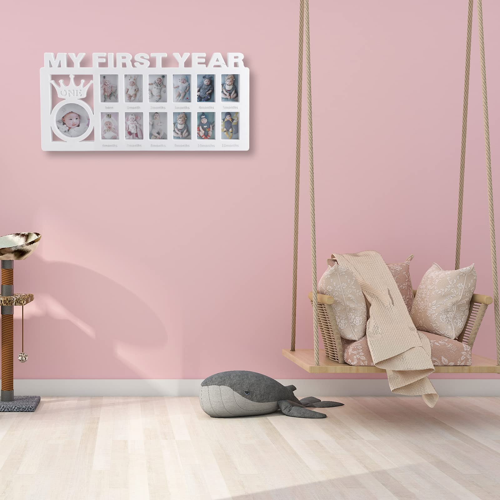 Baby Picture Frames My Frist Year Photo Keepsake for Baby 1-12 Months Memory, White