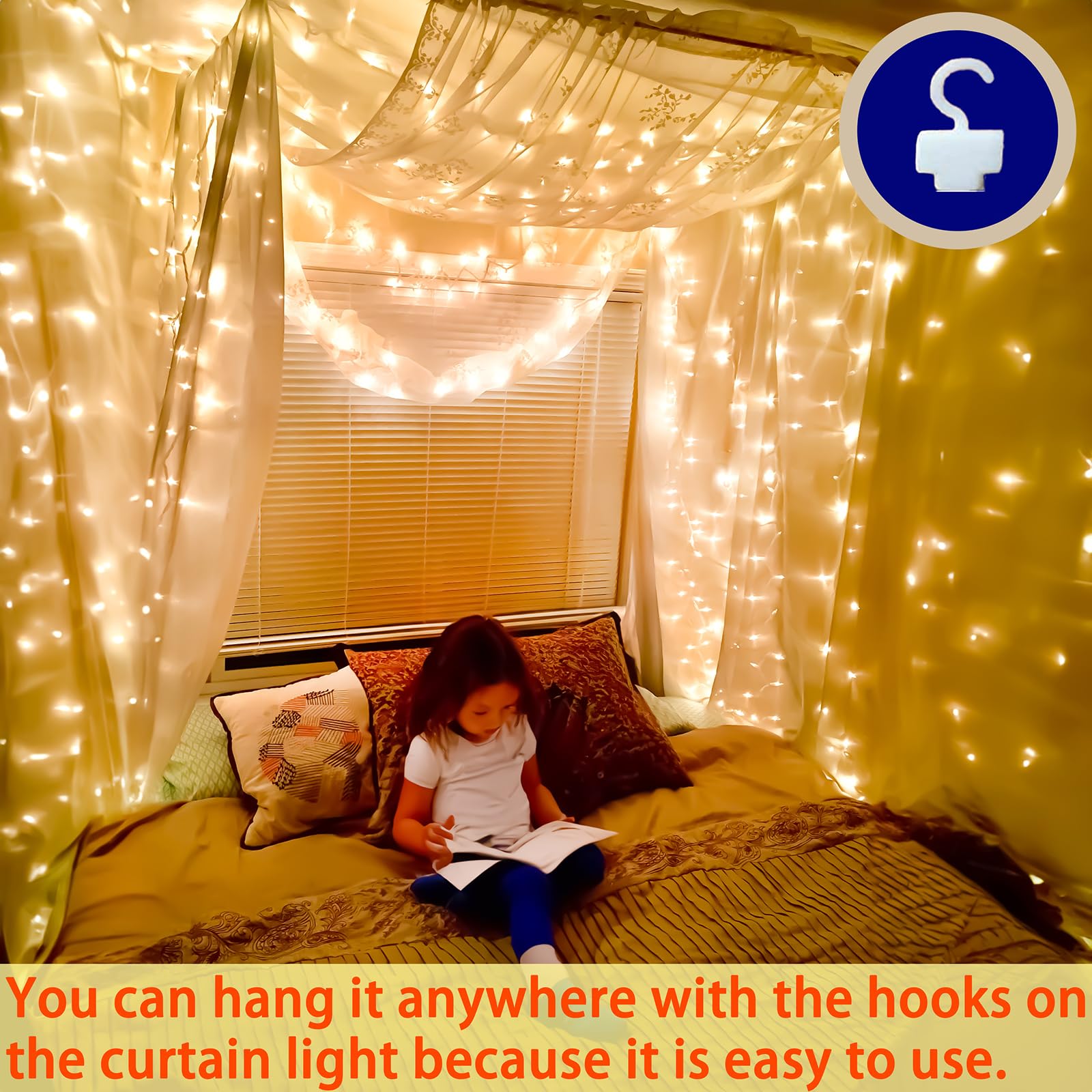 - Transform Any Space: Two pack curtain lights with total 600 individual LEDs and 8 different flash modes, these fairy lights are perfect for creating a magical atmosphere in any room or outdoor space.