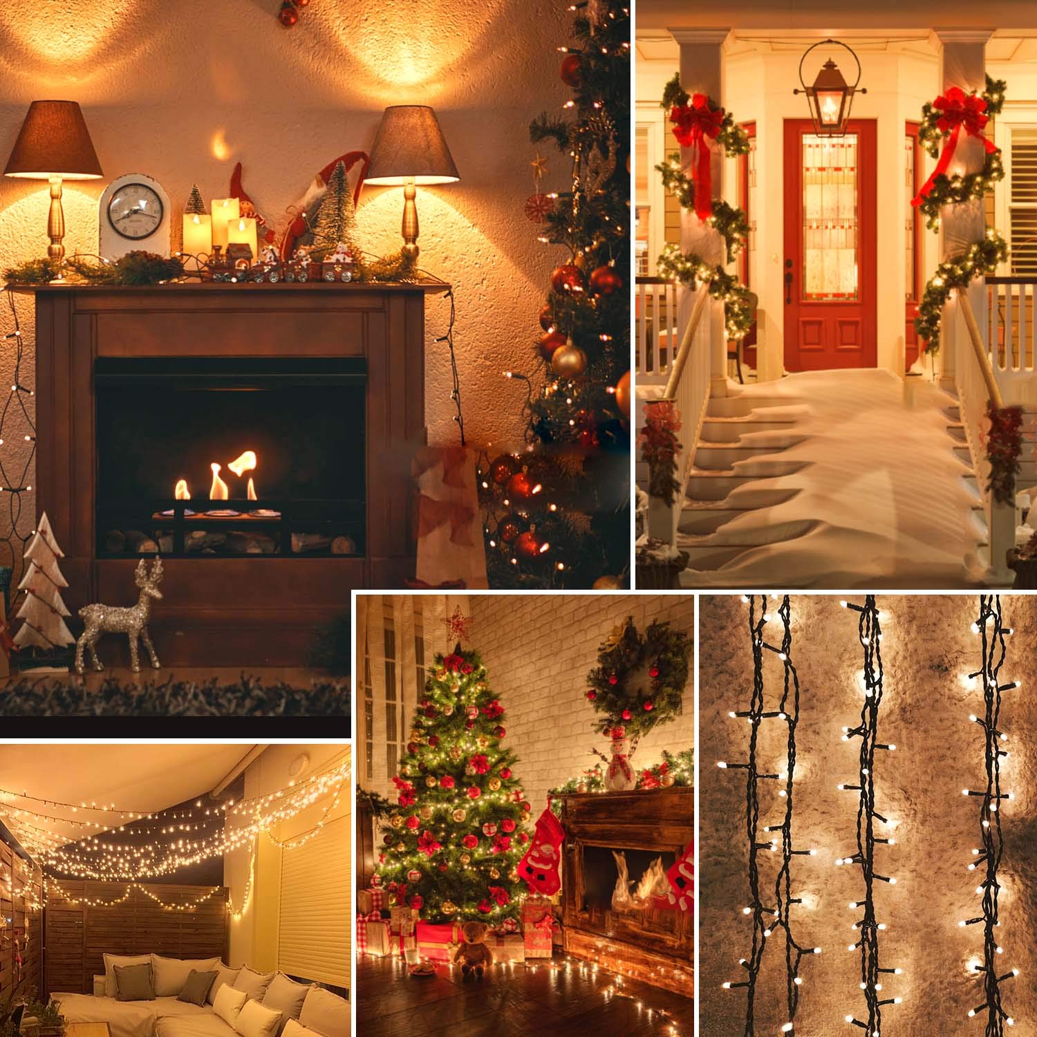 - Indoor/Outdoor Versatility - Transform Any Space Instantly From cozy Christmas tree wraps to dazzling patio displays, these 240LED lights adapt to ALL occasions: 4th of July parties, weddings, backyard BBQs, or year-round ambiance. The flexible green wire bends effortlessly around railings, fences, and branches ā no professional installation needed