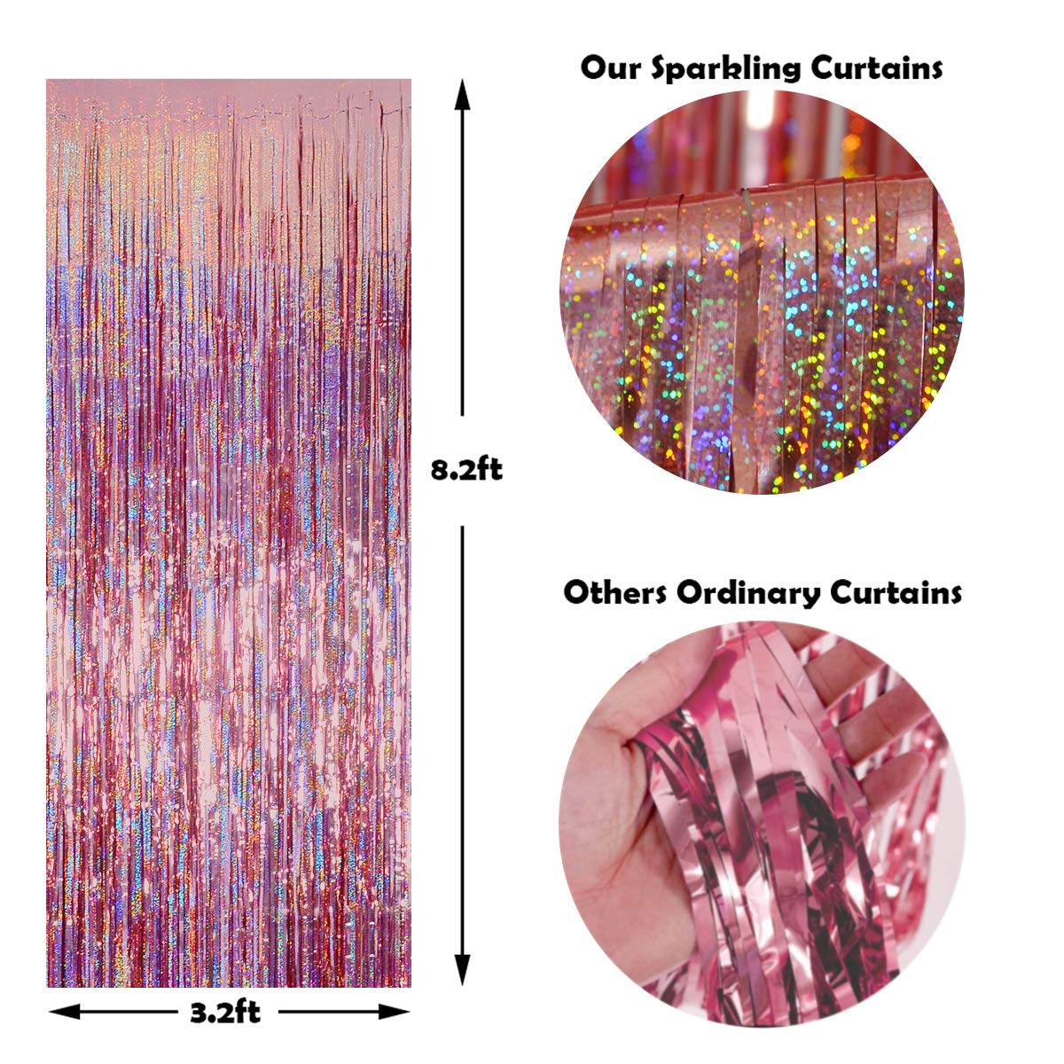 - Latest Laser Technology: The metallic fringe curtains made by aluminium foil with laser spangle to let the foil curtains more shining and beautiful, make the party complete