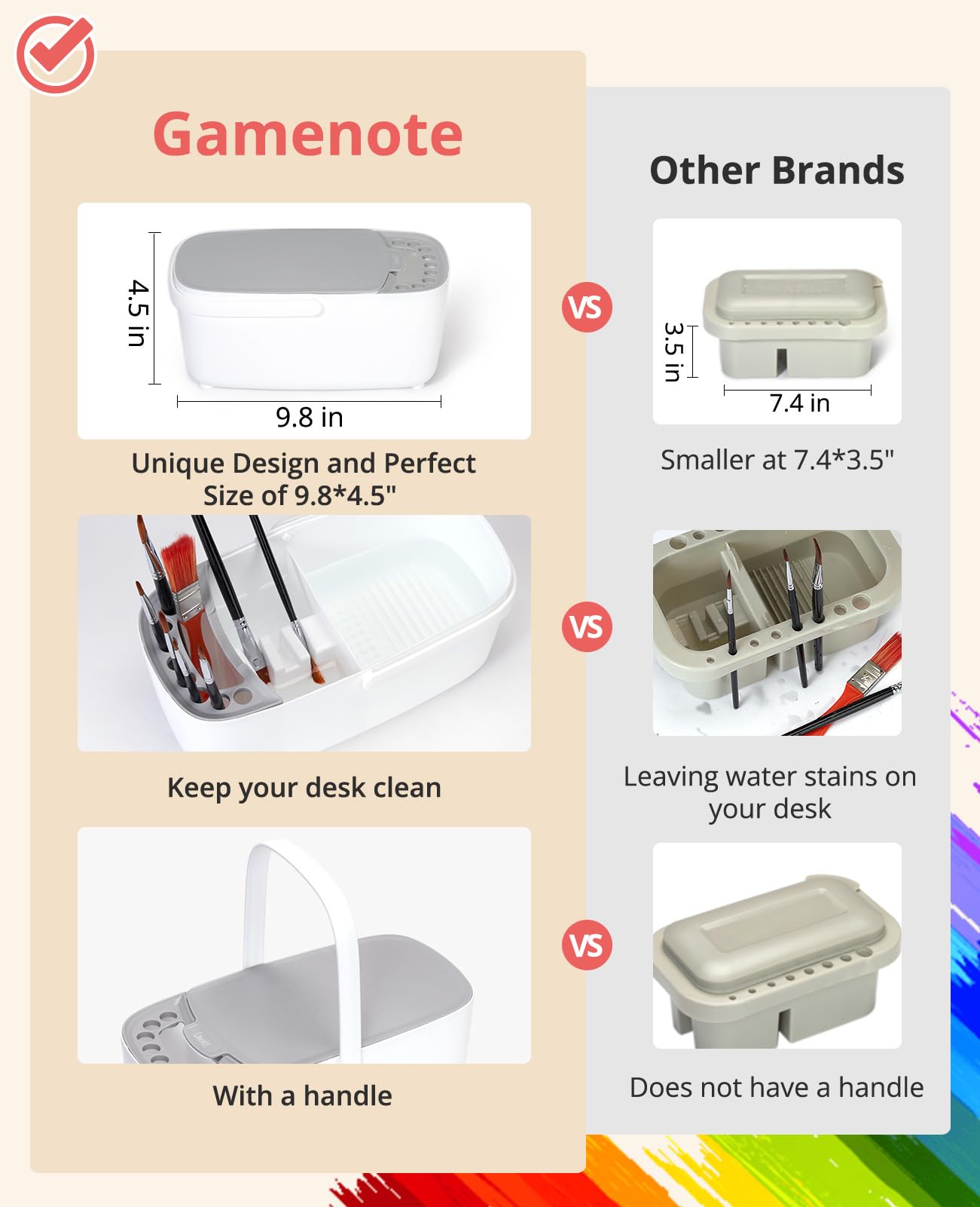 - 【No Mess】Designed to keep surfaces safe and not only keep your brush clean but also the area around you. Our paint brush holder has a separate compartment to hold your brushes of different sizes, so you don't have to worry about water or paint drops on the table while drying.