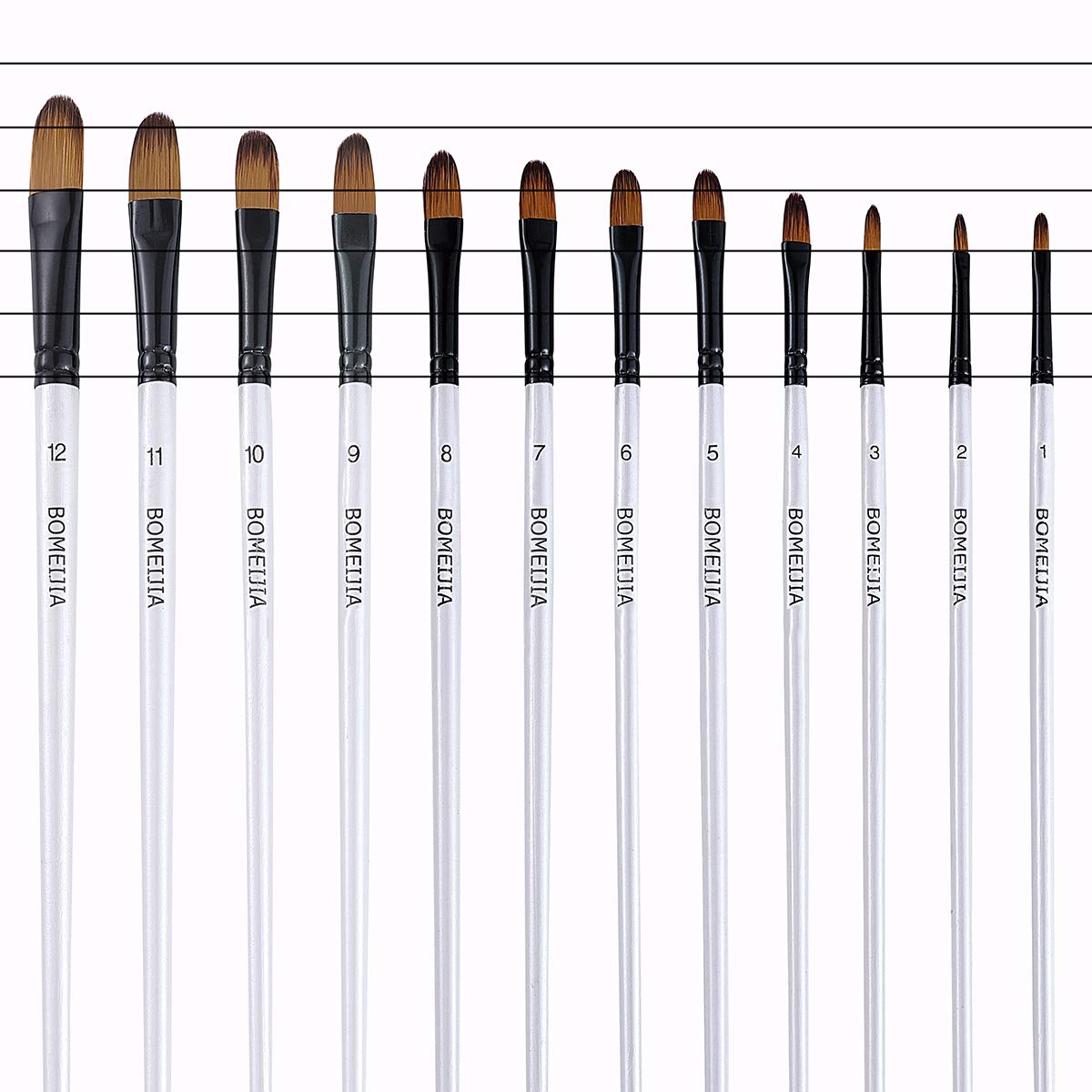 - PROFESSIONAL BRUSHS: The set of brushes include 12pcs of different sizes. Model 1# 2# 3# 4# 5# 6# 7# 8# 9# 10# 11# 12#, Apply to oil, acrylic, watercolor, art painting, face painting, miniatures, detailing, craft art painting, model, etc.