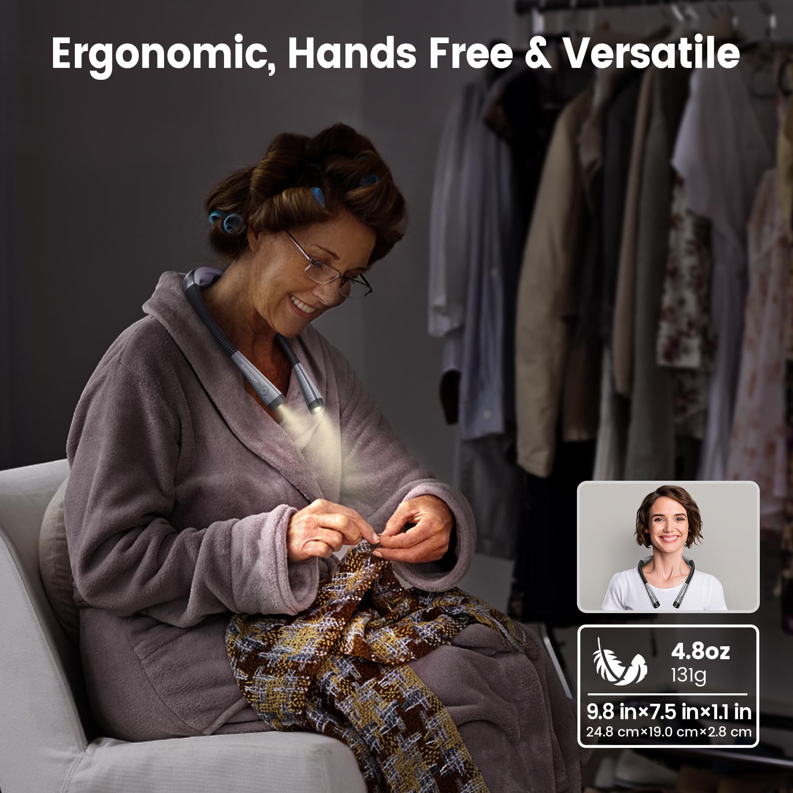 - [Partner Friendly & Versatile] Unlike other book lights for reading at night in bed, the Glocusent neck book light has a special narrow beam angle (90°) design. It is bright enough to illuminate the area you focus on while being dim enough not to disturb your sleeping partner. Additionally, the hands-free feature allows you to engage in various delicate activities such as knitting, walking, repairing, and more. Make it a perfect versatile book light.
