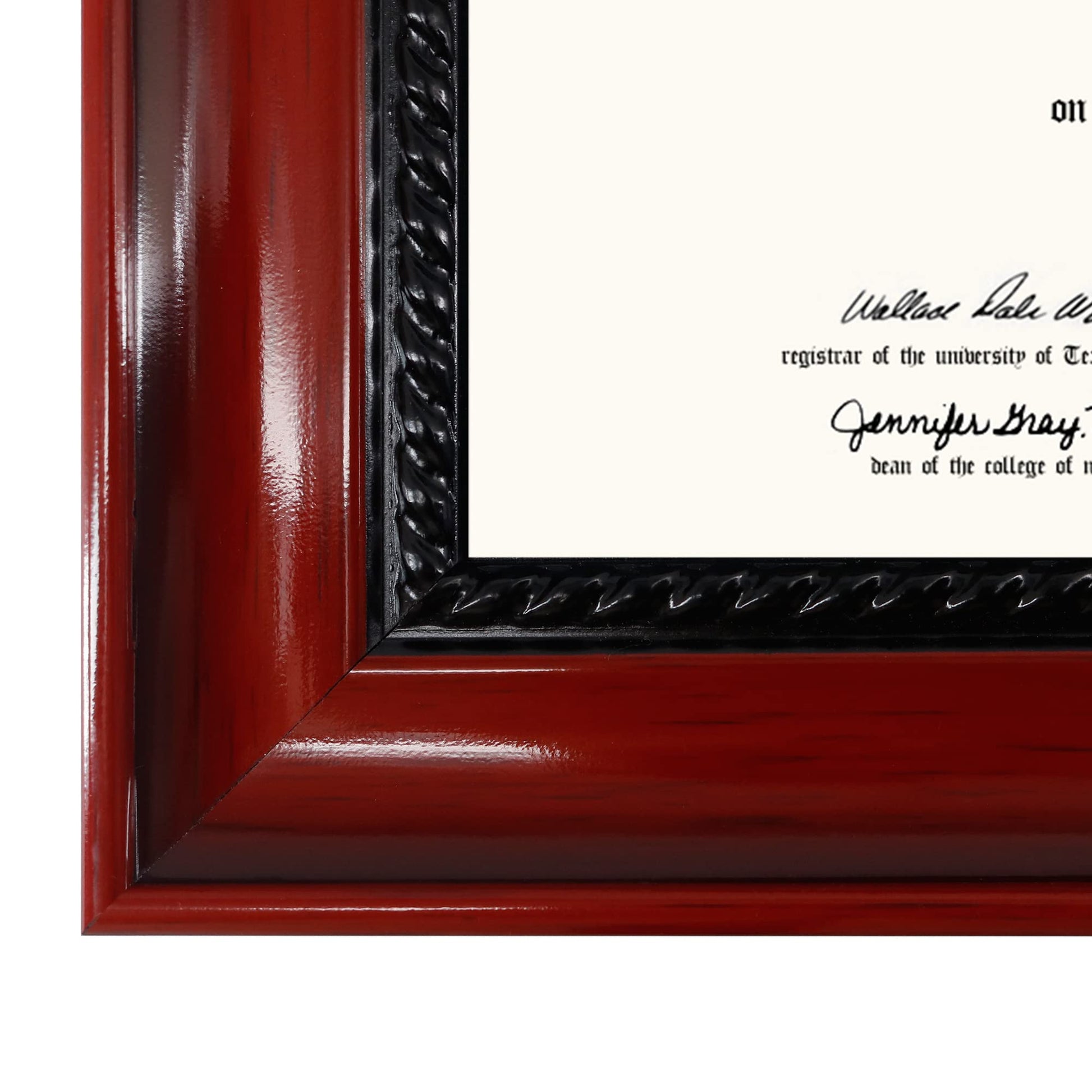 - SOLID HARDWOOD: The frames are crafted of solid wood with a nice cherry lacquer finish and intricate rope detail. Durable high definition & UV protction acrylic protect your documents from dust, moisture and scratches, make your certificates great for years.