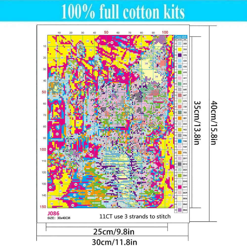 - PACKAGE:11.8*15.8inch,2pc cross stitch needles, enough thread already sorted, English instructions,cross stitch patterns instructions,and 11CT Pre-printed stamped cross stitch fabric cloth. (11CT,without frame)