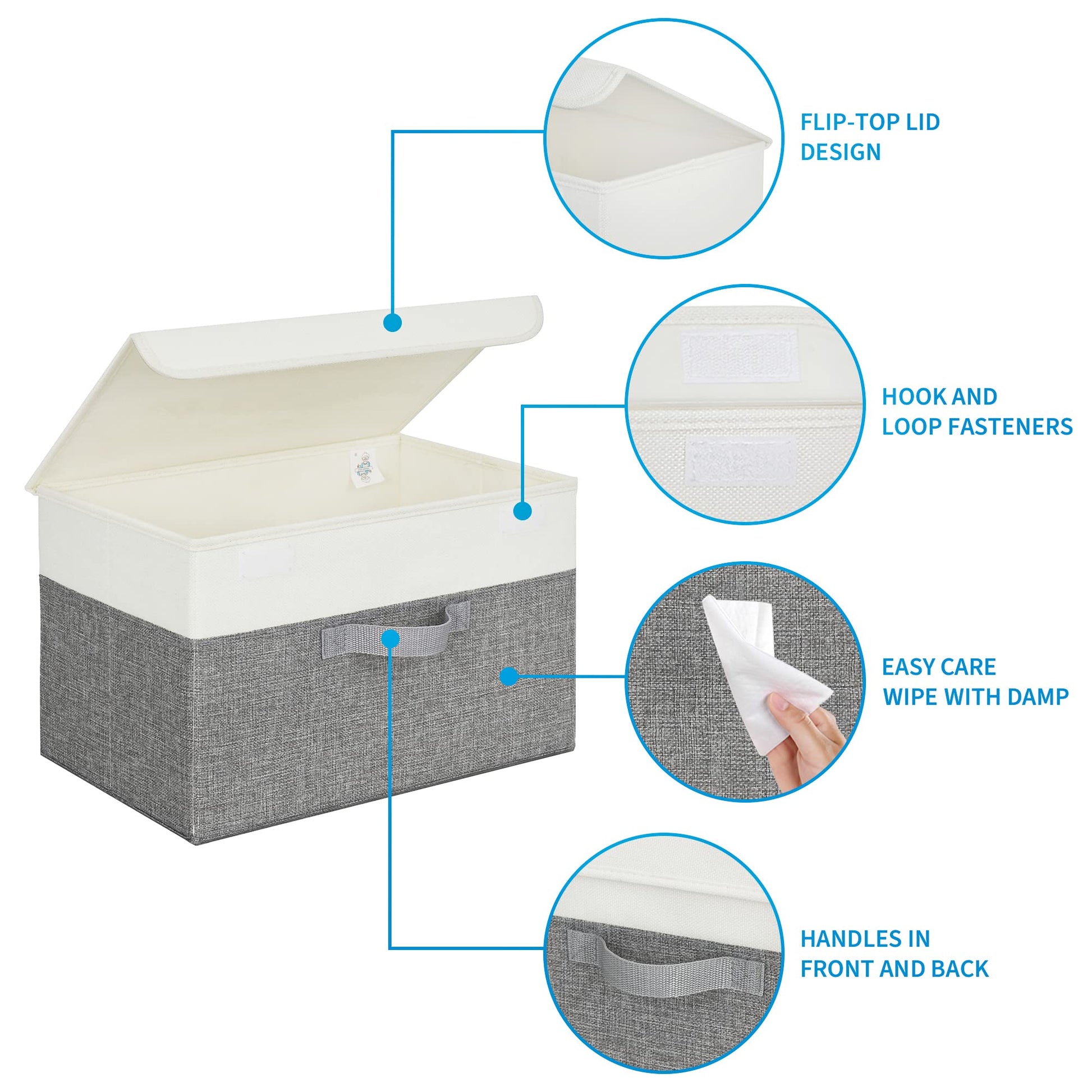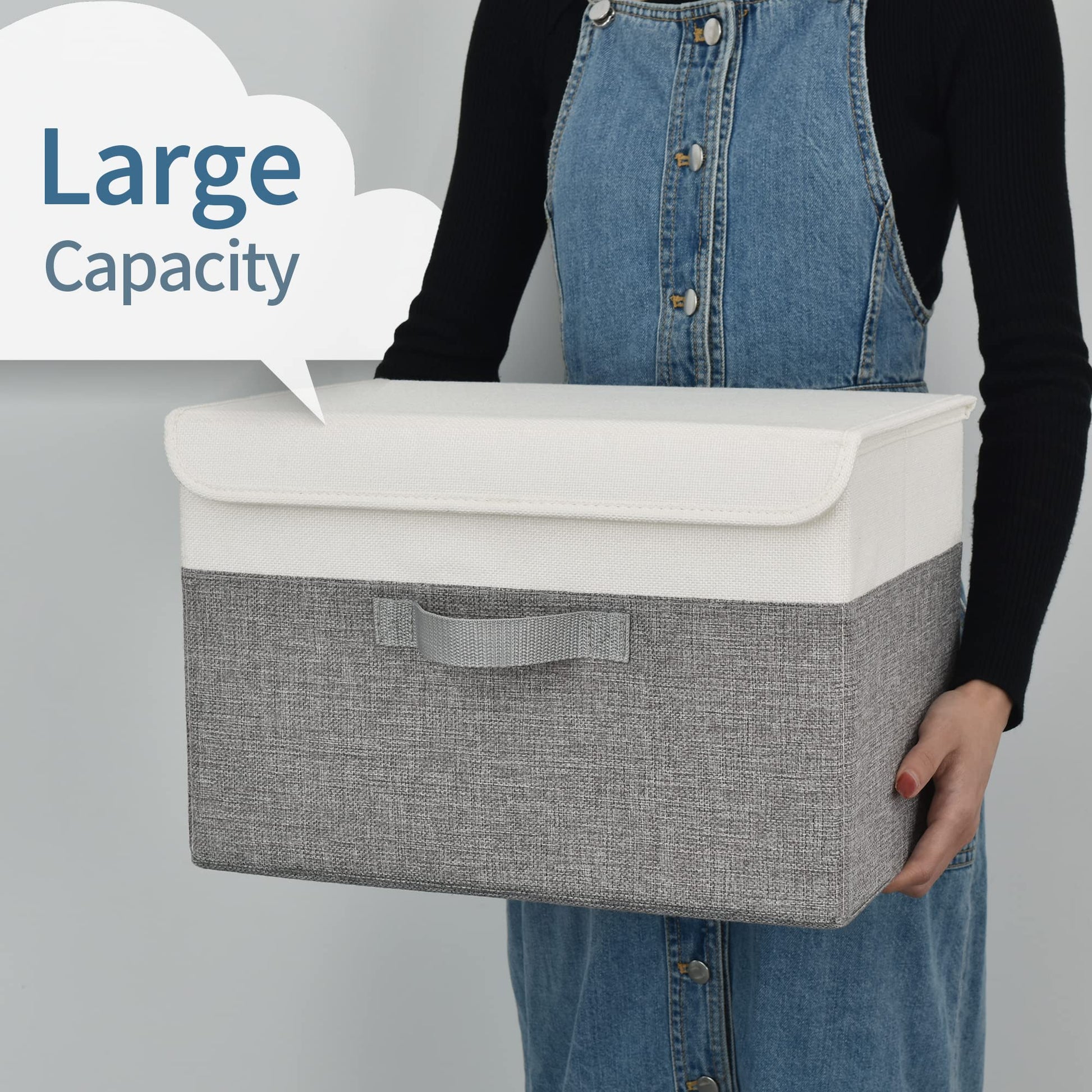 SAYS Fabric Storage Boxes, Keepsake Box, Large Storage Bins with Lids, Closet Organizers, Toy Organizer, Storage Baskets for Shelves, White/Gray, 2-Pack