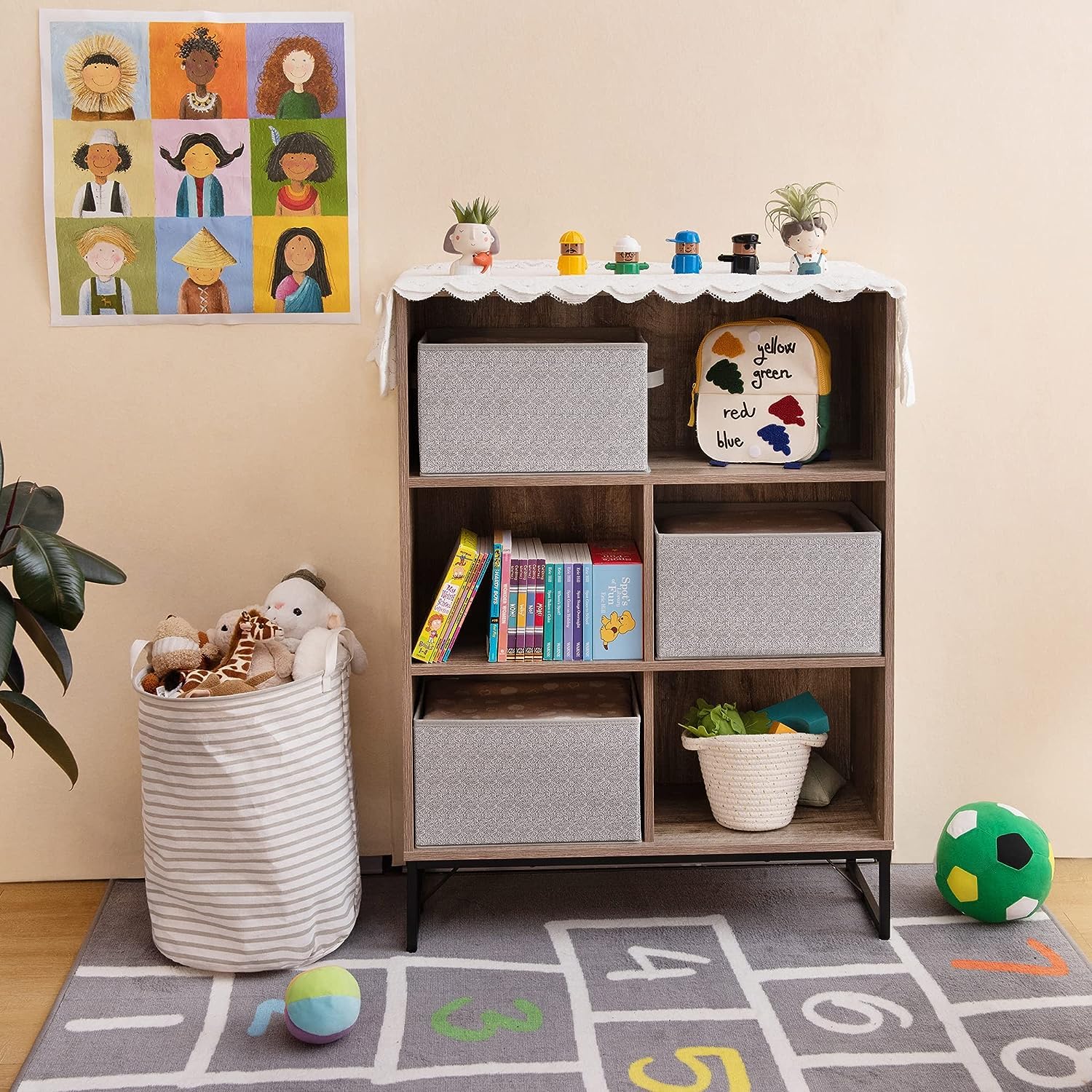 Storage Baskets for Shelves, Fabric Storage Bins with Handles, Collapsible Storage Boxes, Closet Storage Bins, Organizers and Storage, Gray, Large, 3-Pack