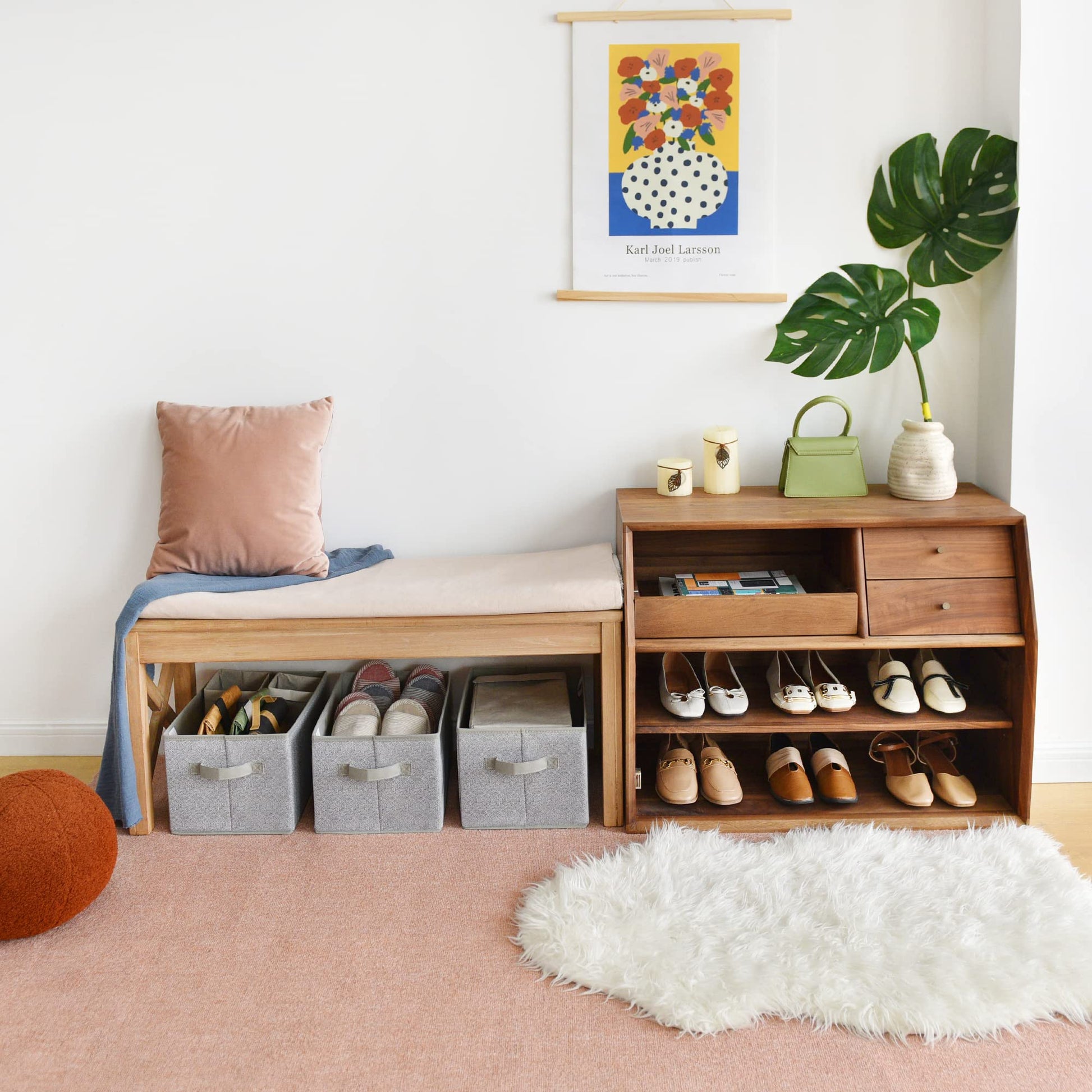 - Easy to Install & Foldable - The storage bin for shelves folds flat when not in use to save space.