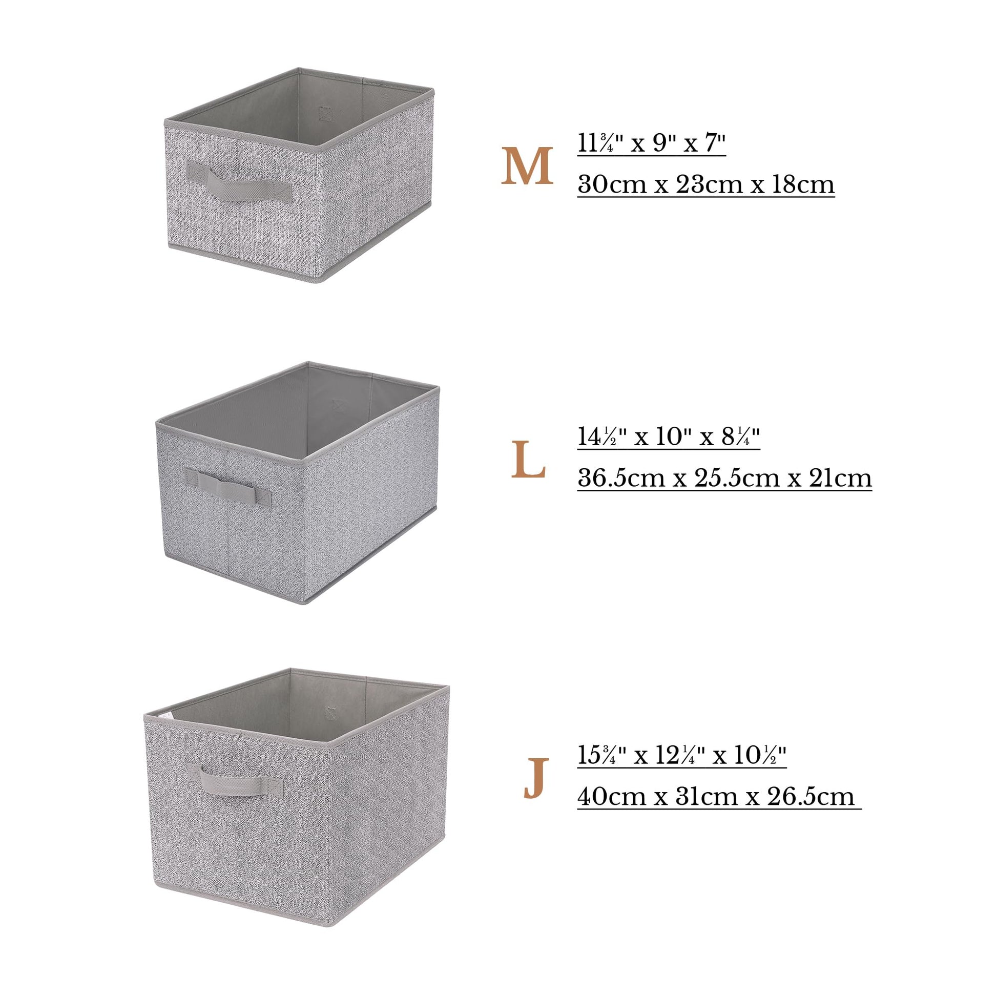 - Eco-Friendly Material - Made of high-quality non-woven fabrics, environmentally friendly materials, breathable and wear-resistant, no irritating odor. Fabric boxes come in sets of 3, each measuring 14¼"L x 10"W x 8½"H.
