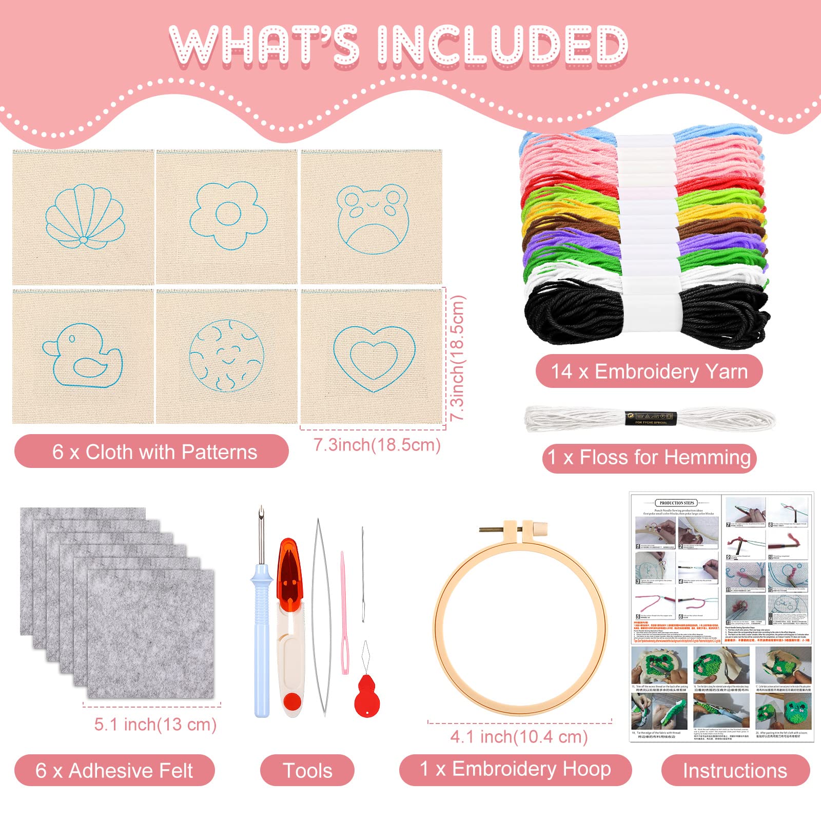 - Sufficient Crochet Craft Set: the punch needle kit you will receive comprises 6 pieces of cloths with patterns, 6 adhesive felts, 1 set of yarns, 1 embroidery hoop, 5 handle tools and 1 instruction, totally 20 pieces; This complete craft set can suffice your needs for coaster making, and you can also share them with your friends