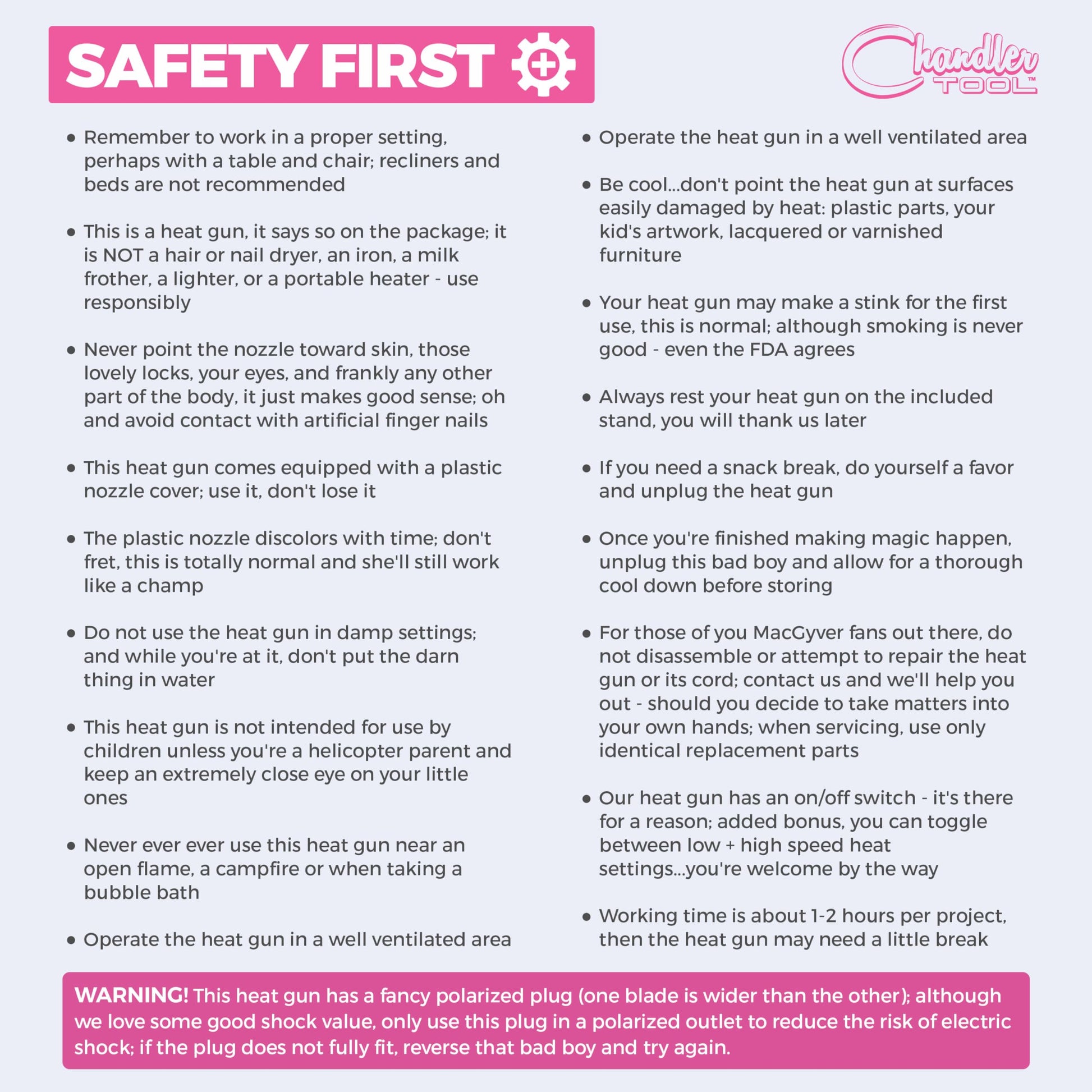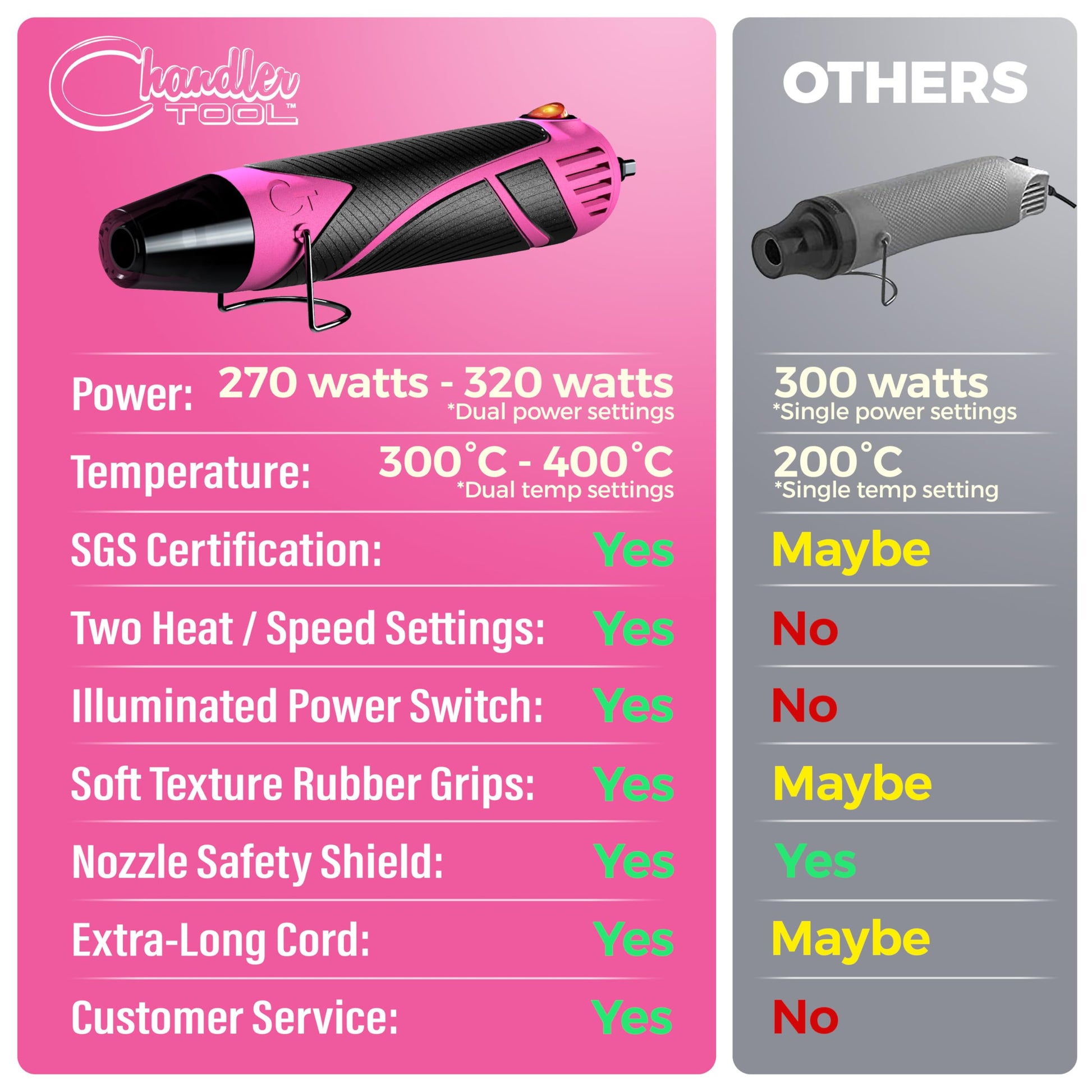 - ▶ Variable Speed & Heat: Our heat gun for crafts has dual temperature and speed settings - low speed & heat for delicate or detail work and high speed & heat for heavy duty or high volume work. It’s like having a mini heat gun and a full size heat gun in one!
