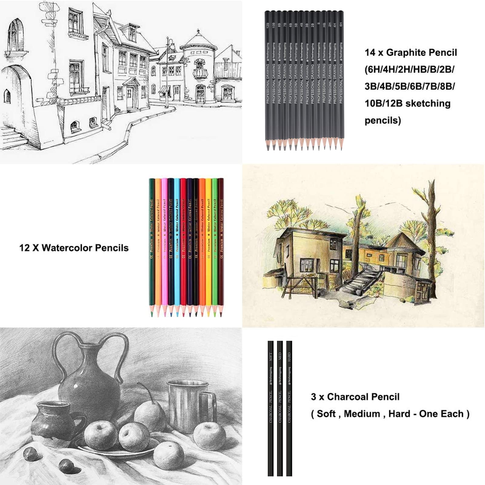 - 【Travel-Portable Storage & Ease To Carry 】The perfect home, school,office or travel art set, keep all your charcoal pencils, graphite sticks, art knife and more all properly stored when not in use thanks to the included Pencil case.Create a mini workspace wherever you go with. Enjoying the drawing time immediately.