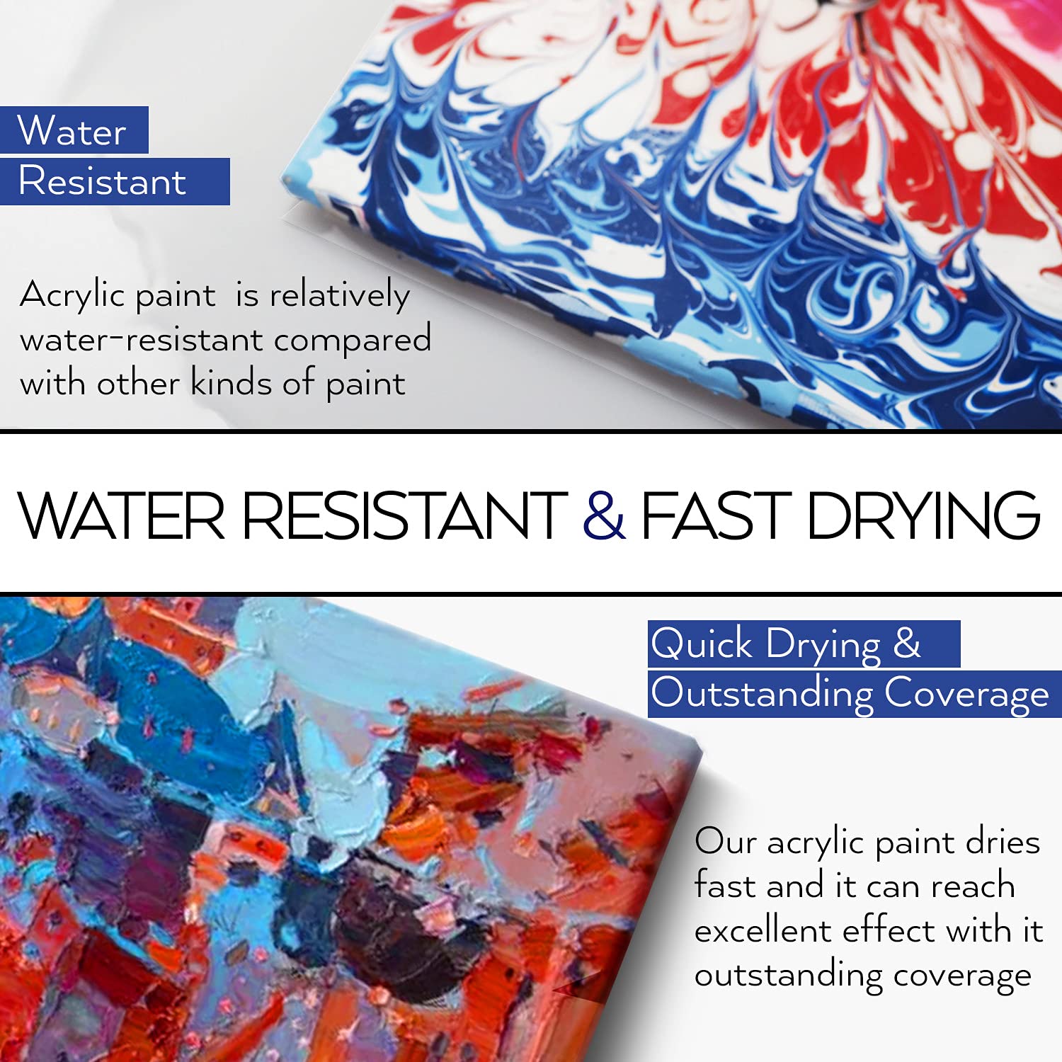 - 🎨Easy to Use & Store- The acrylic paint set in flip-top squeeze bottles makes it easy to control the flow while applying the paint to arts painting. Comes in a sturdy nice flip-lid cardboard box, the paint set will be easy to store and safe keeping