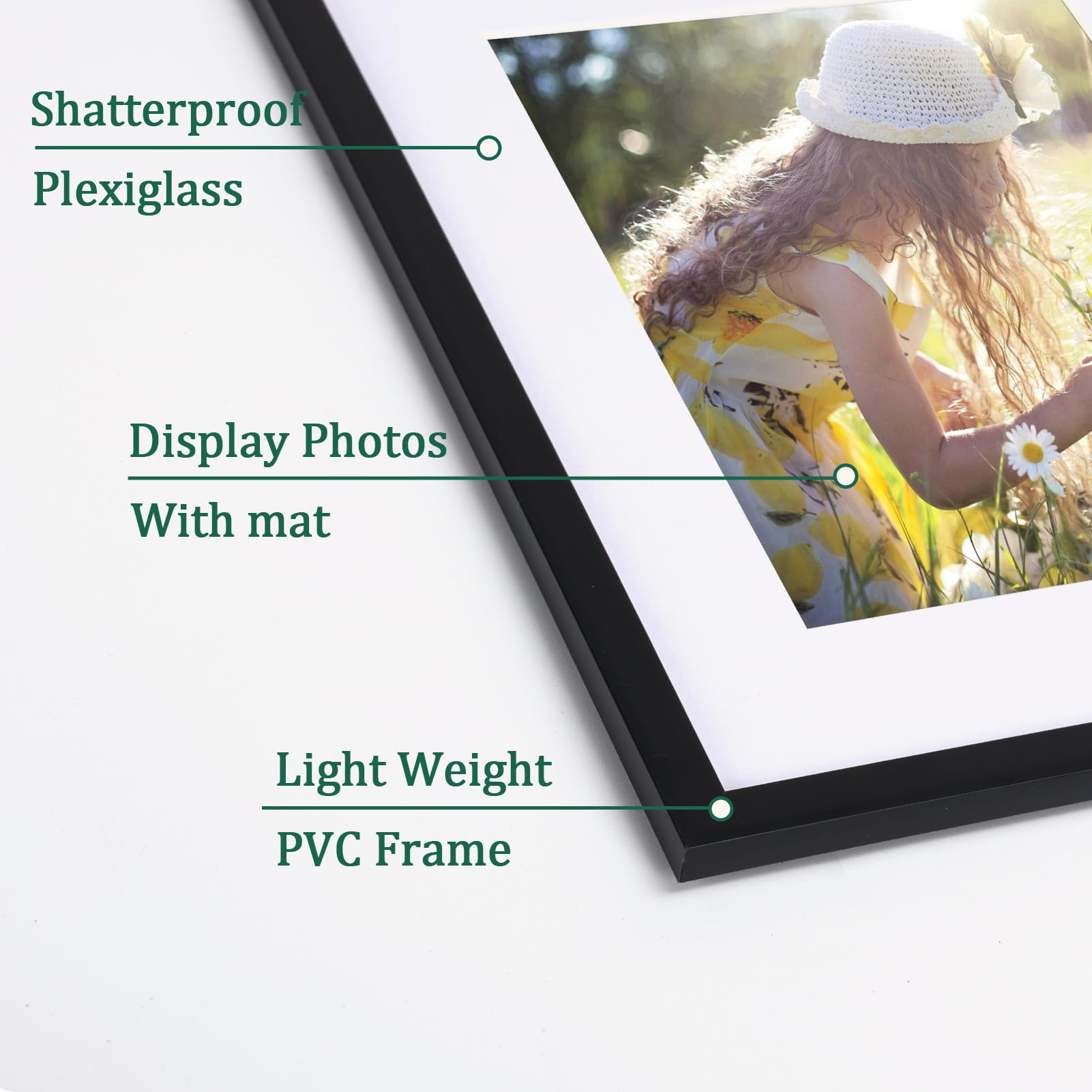 - Display Two Sizes of Photos: The black frame can display 11x14 photos without mat or 8.5x11 document, certificate, award, photos with mat. Let your photos speak from the heart with black photo frame.