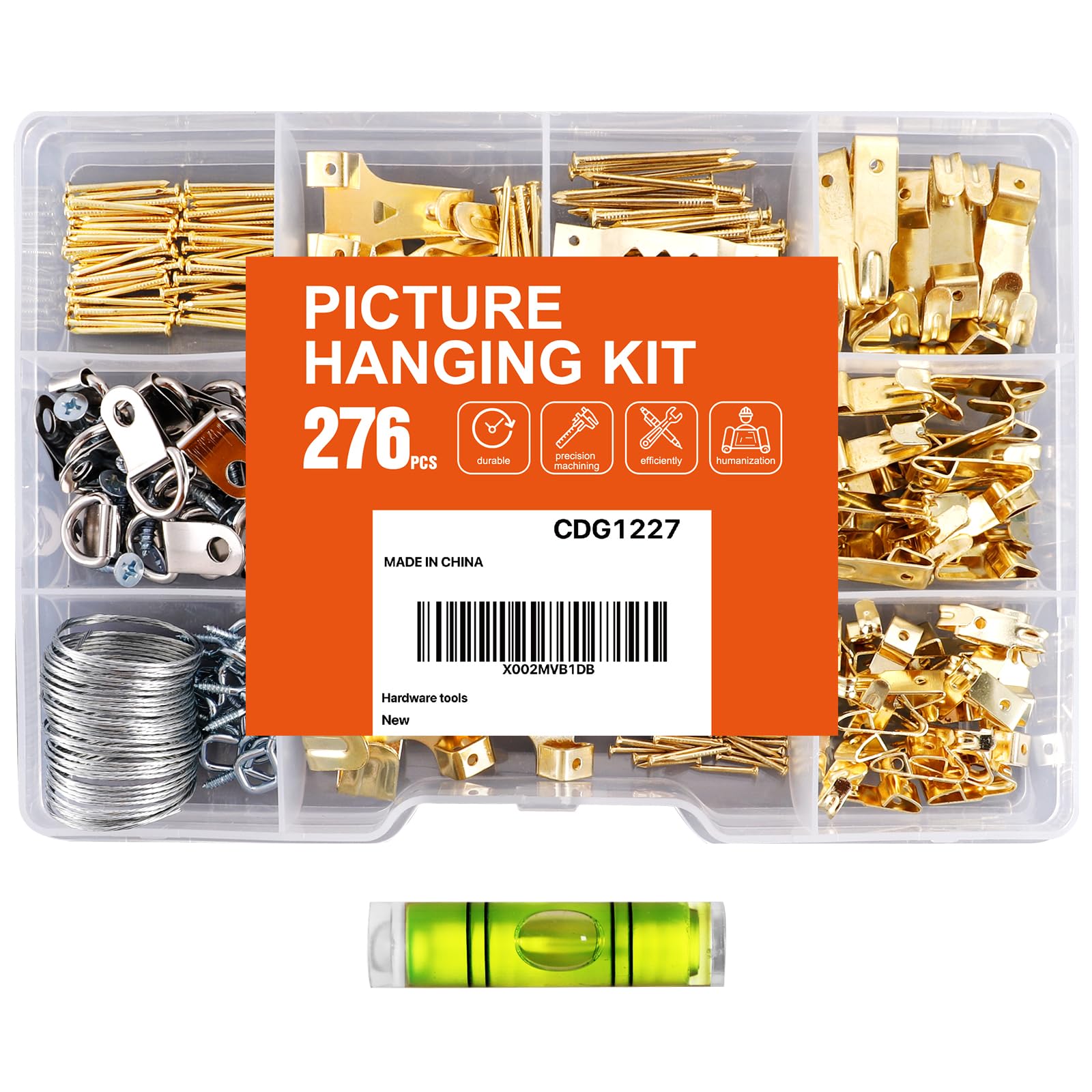 276pcs Picture Hanging Kit, Picture Hangers, Heavy Duty Frame Hooks Assortmentwith Nails, Hanging Wire, Screw Eyes, D Ring and Sawtooth Hardware for Frames Mounting