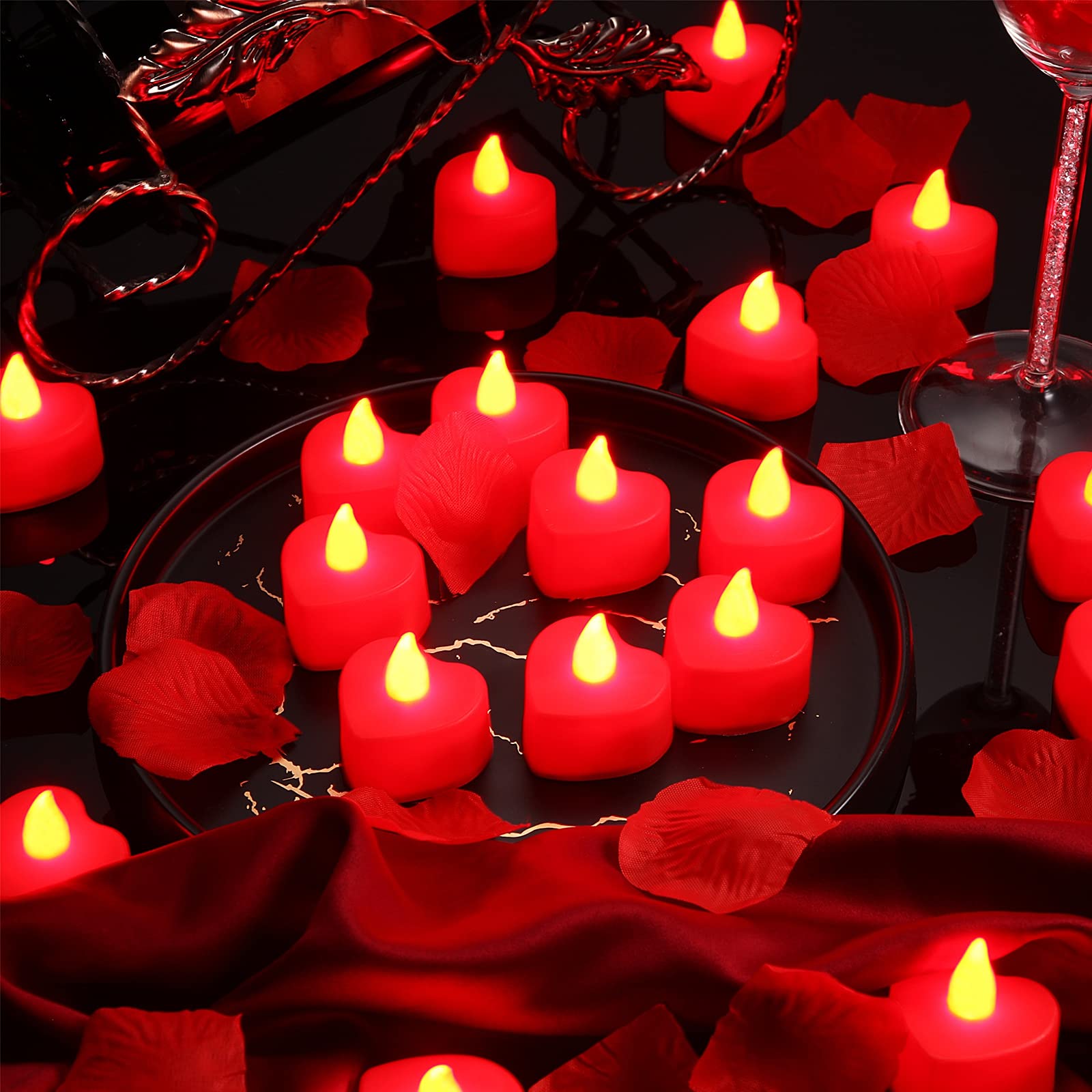 - Adequate quantity:you will get 1000 pieces beautiful artificial fake rose petals and 24 pieces LED heart shape candles, adequate quantity for you to create your own romantic surrounding and spend a nice night with your lover