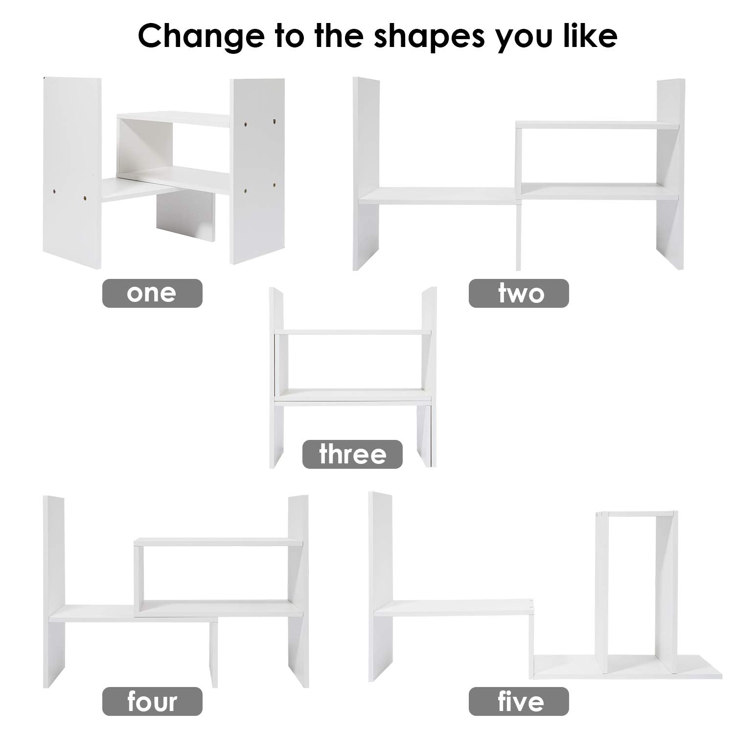 Desk Shelf, Adjustable Desktop Storage Organizer, Wood Display Shelf Rack, Office Supplies Desk Organizer,White