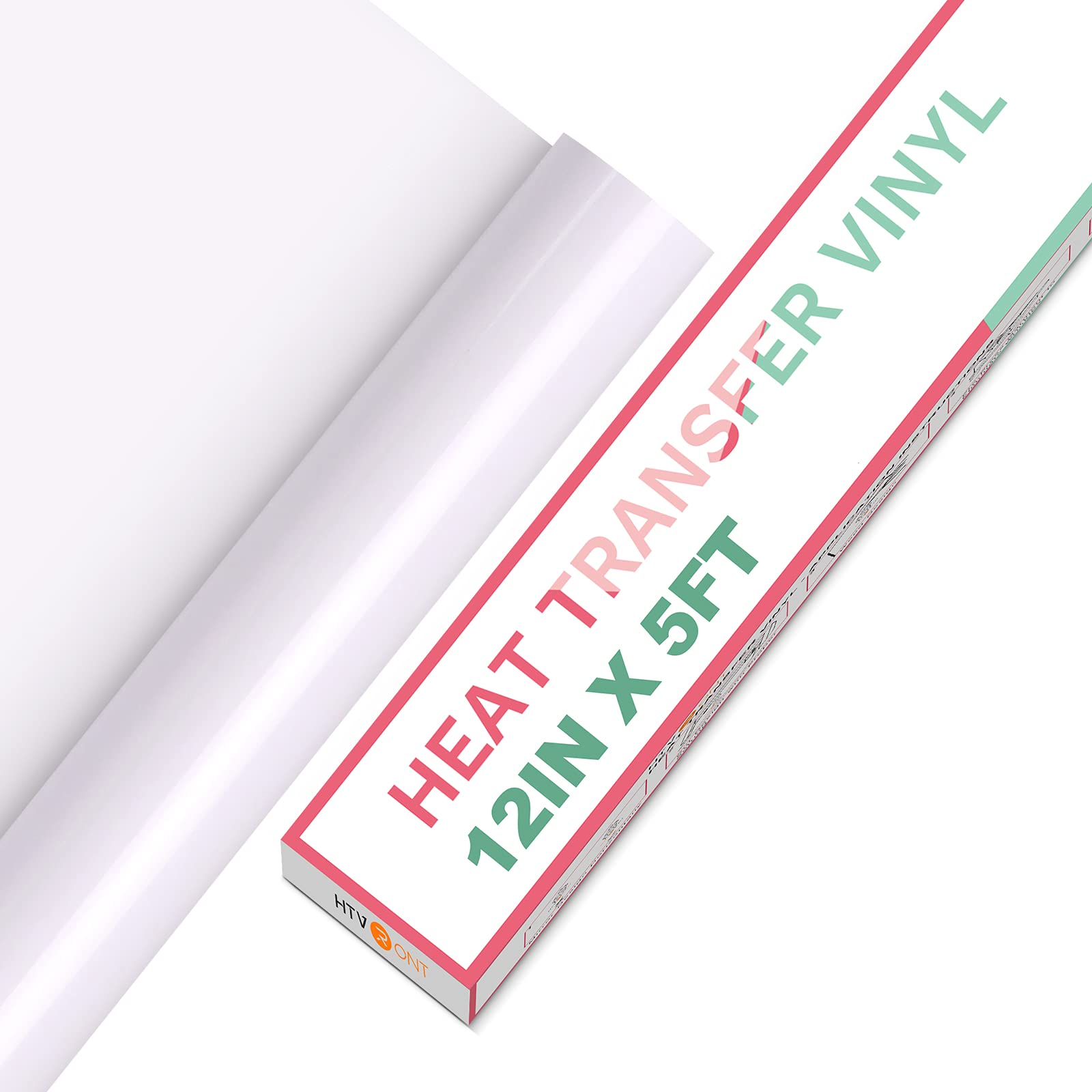 HTV Vinyl Rolls Heat Transfer Vinyl - 12" x 5ft White HTV Vinyl for Shirts, Iron on Vinyl for All Cutter Machine - Easy to Cut & Weed for Heat Vinyl Design (White)