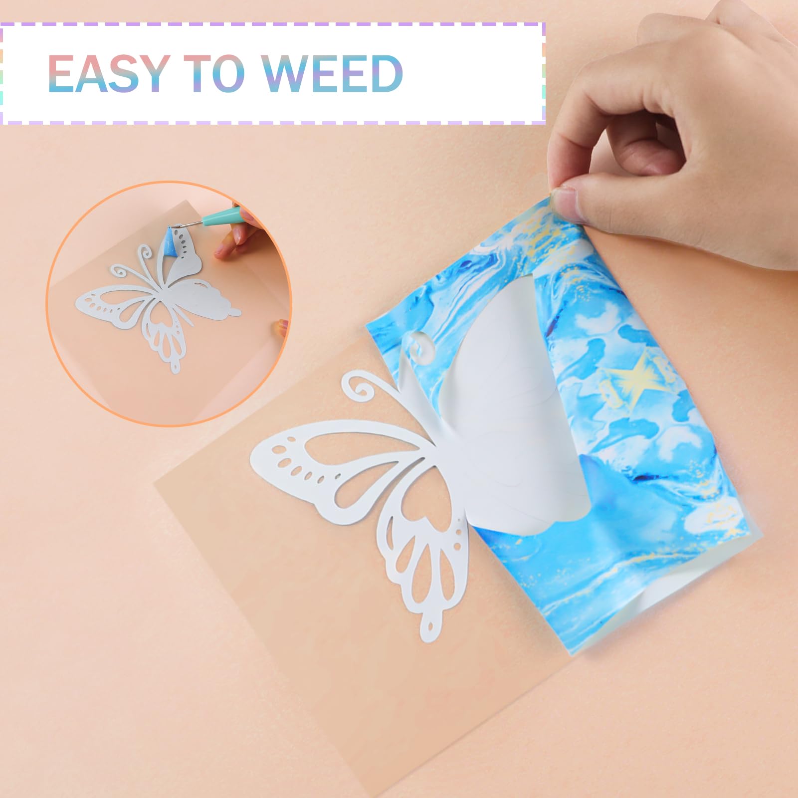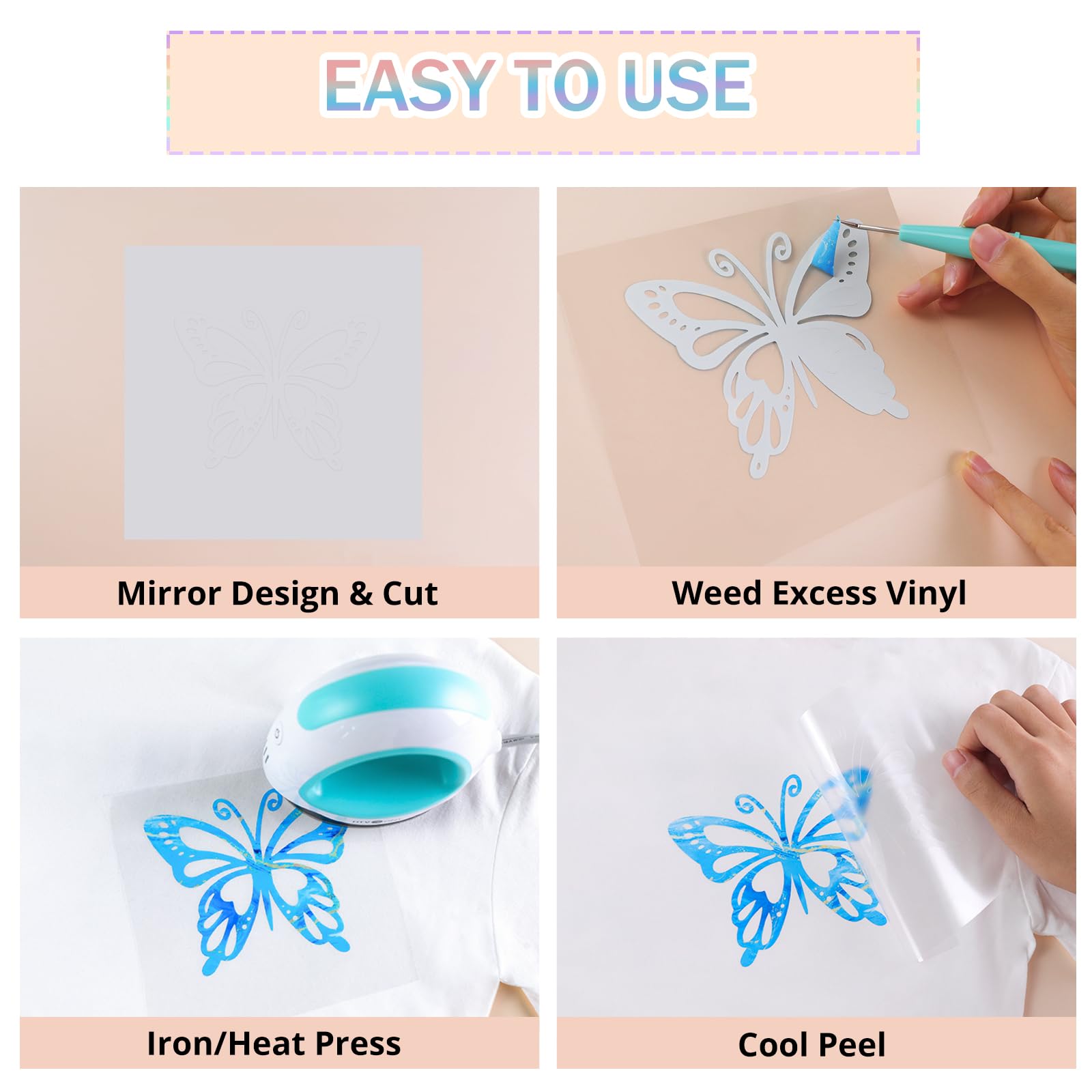 - 【EASY TO CUT & WEED & TRANSFER】Our premium htv vinyl will save your time which you may waste on each image or letter, because you can cut and weed easily through the designs just right. The iron on vinyl is sensitive to temperature and pressure, which can be heat transferred on any t-shirt easily