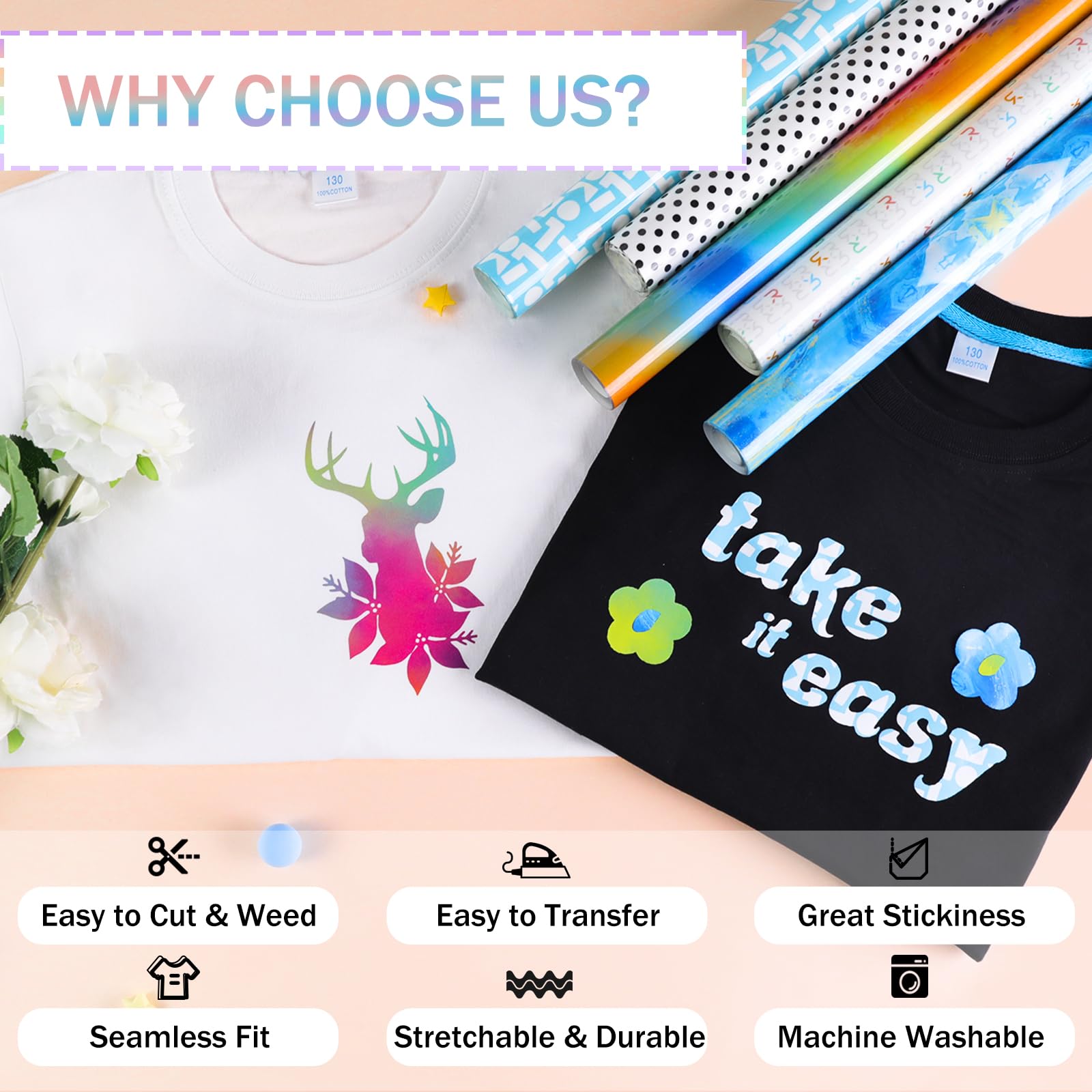 - 【Amazing Tie Dye HTV】Compared to other ordinary heat transfer vinyl, Watercolor htv has our unique customization and you will never see the same pattern htv on the market. 12" x 8FT htv vinyl is enough for you to create your craft,add an artistic touch to your outfit and make you stand out in the crowd