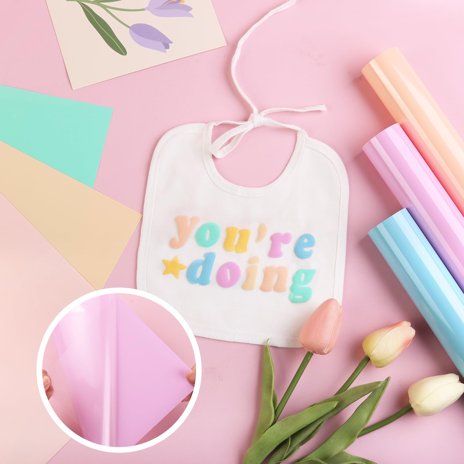 - 【Special Pastel Colors】We mainly offered the special color HTV to you , There are total 6 sheets different candy color puff HTV include , You can crafting any items you may like to design on the fabric