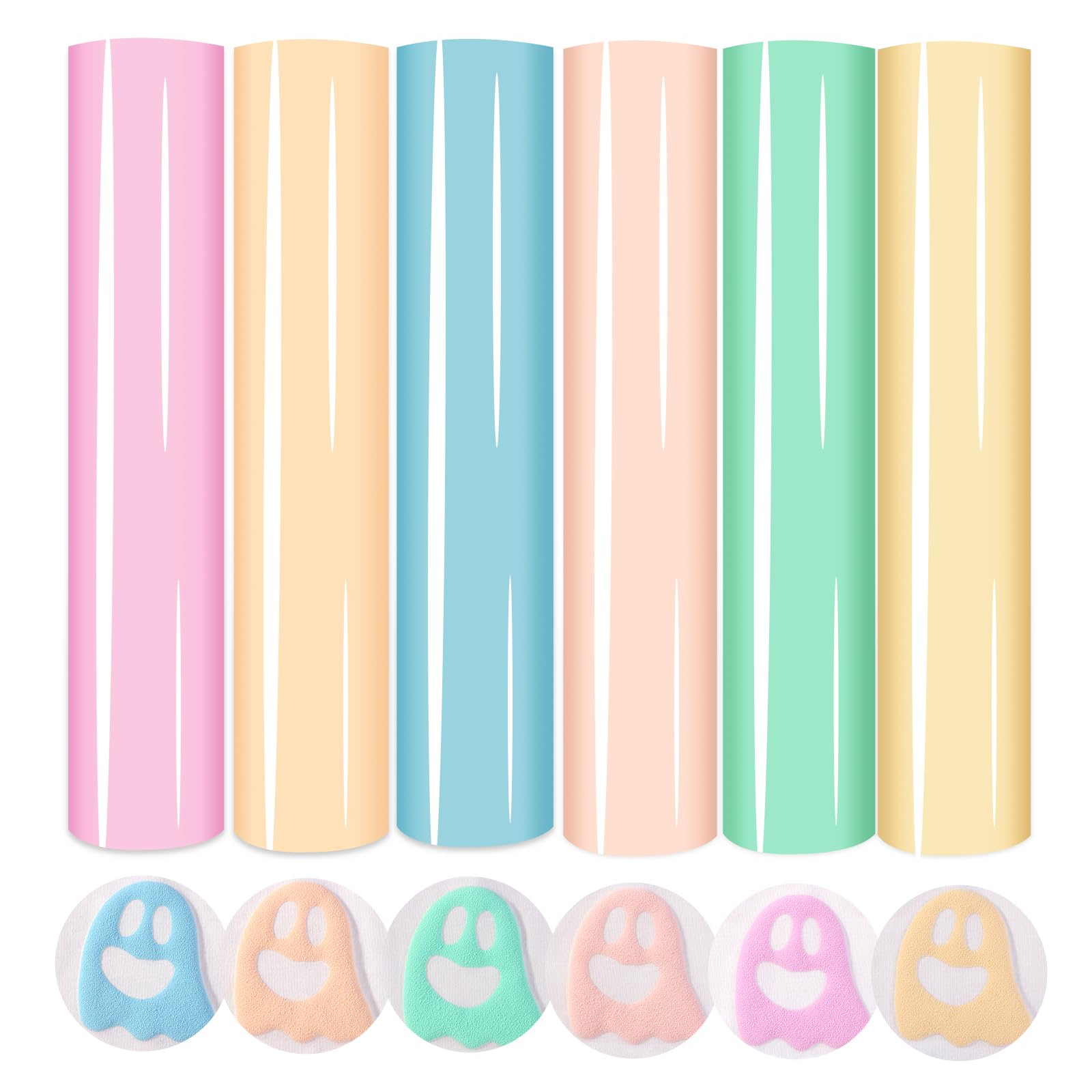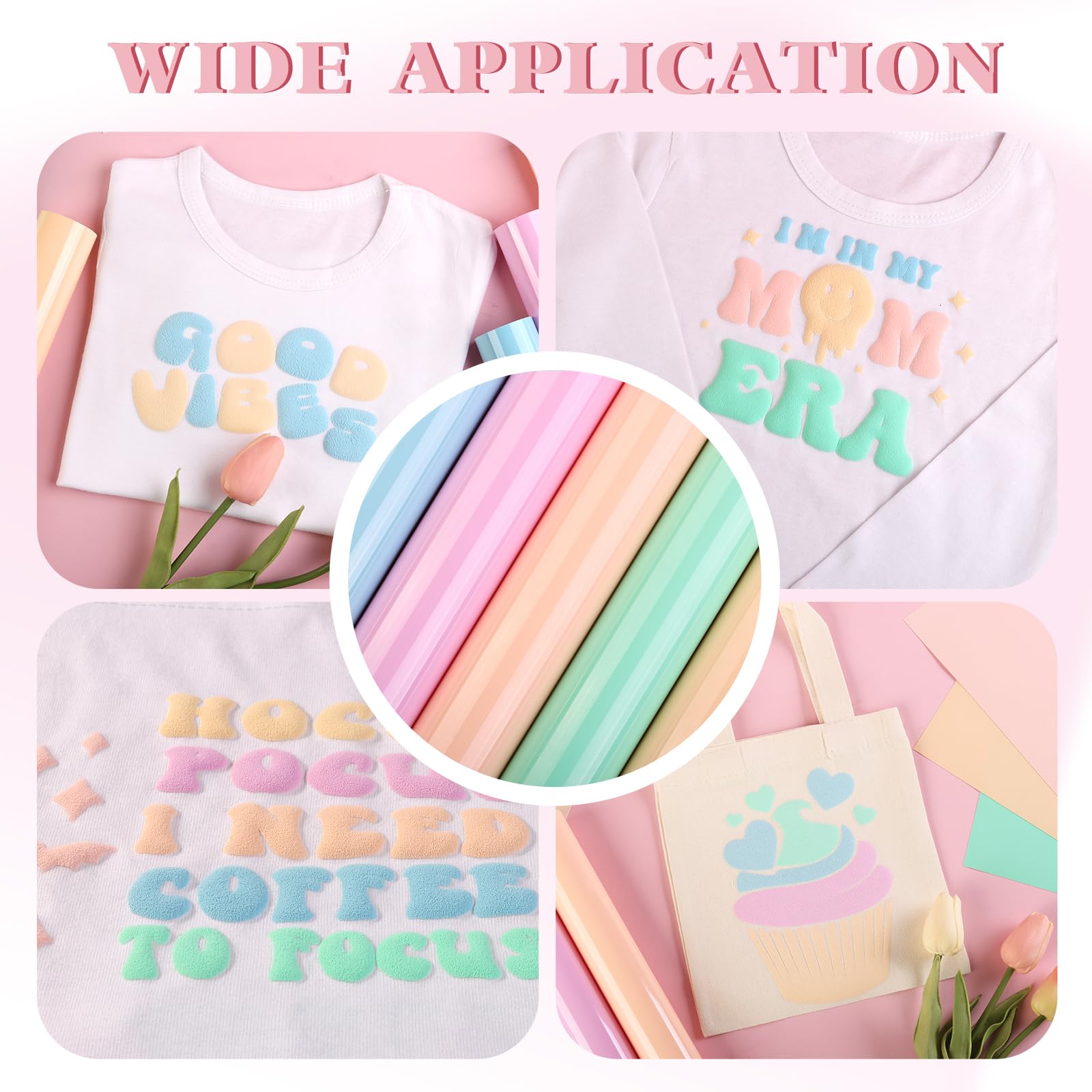 Puff Vinyl Heat Transfer -12'' x 10''6 Sheets Pastel 3D Puff HTV Iron On Vinyl Candy Color HTV Green Puff Heat Transfer Vinyl for T-Shirts