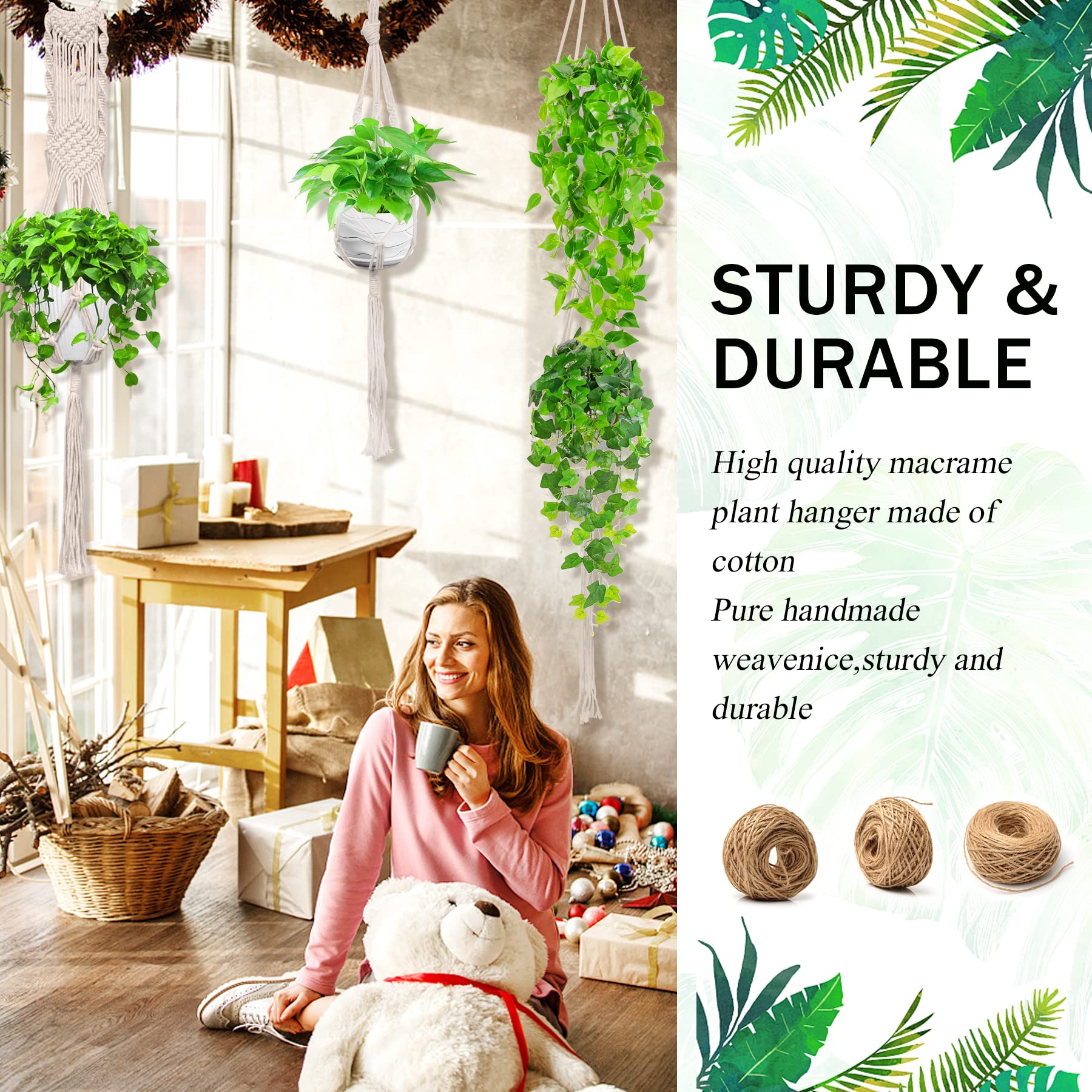 - 【Natural Macrame Plant Hanger】These plant hangers indoor macrame are made of high quality pure cotton rope/cord,beads are made of wood.Macrame plant hanger is tight knots and pretty designs,plant hanger is sturdy, durable and premium quality.Boho plant hangers are flexible, non-deformable. Plant hanger indoor is handmade by our talented artisans.The modern, vintage-inspired plant hangers add the perfect touch to your room. (Macrame plant hanger Don't Include Pots and Plants)