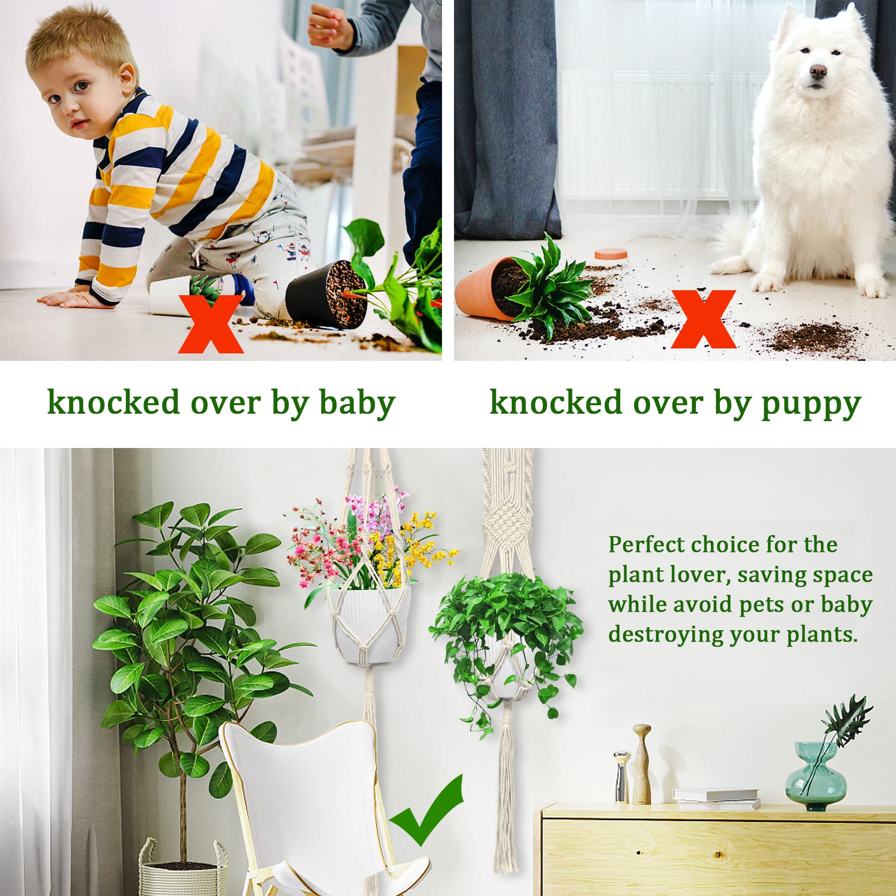- 【Easy Installation Macrame Plant Hanger】Our macrame plant hanger come with 7pcs S hooks and 7pcs ceiling hooks, easy to screw in ceiling or hanging on curtain rack.The plant hanger is suitable for indoor and outdoor use. These hanging macrame planters are easy to use, just expand the 4 legs, put the flowerpot into the bottom middle.This plant hanger will fit a variety of flower pot shapes and sizes.