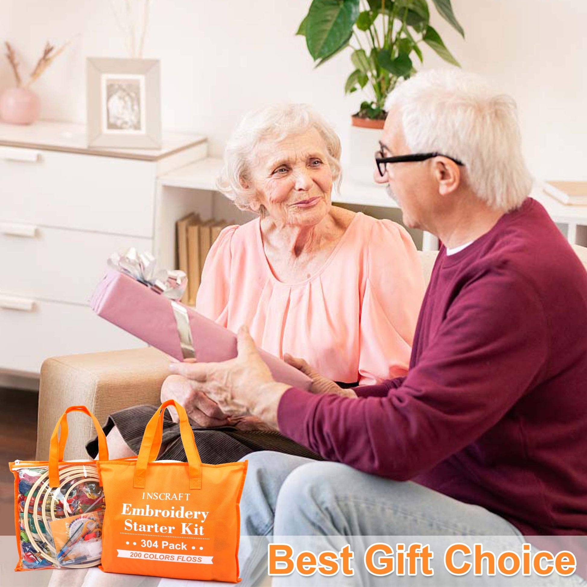 - 304 Pack Value Embroidery Starter Kit: Inscraft full range of embroidery starter kit contains all the tools you use for embroidery. Including 200 colored floss, 5 pcs bamboo embroidery hoops, 2 pcs embroidery cloth, 30 pcs sewing needles, 40 pcs sewing pins, 12 pcs floss bobbins, 3 pcs gel pen refills, 1 pcs empty pen tube, 4 pcs needle threading tools, 1 pcs untwist tool, 1 pcs thimble, 1 pcs scissor, 1 pcs pincushion, 1 pcs packing bag and instructions.