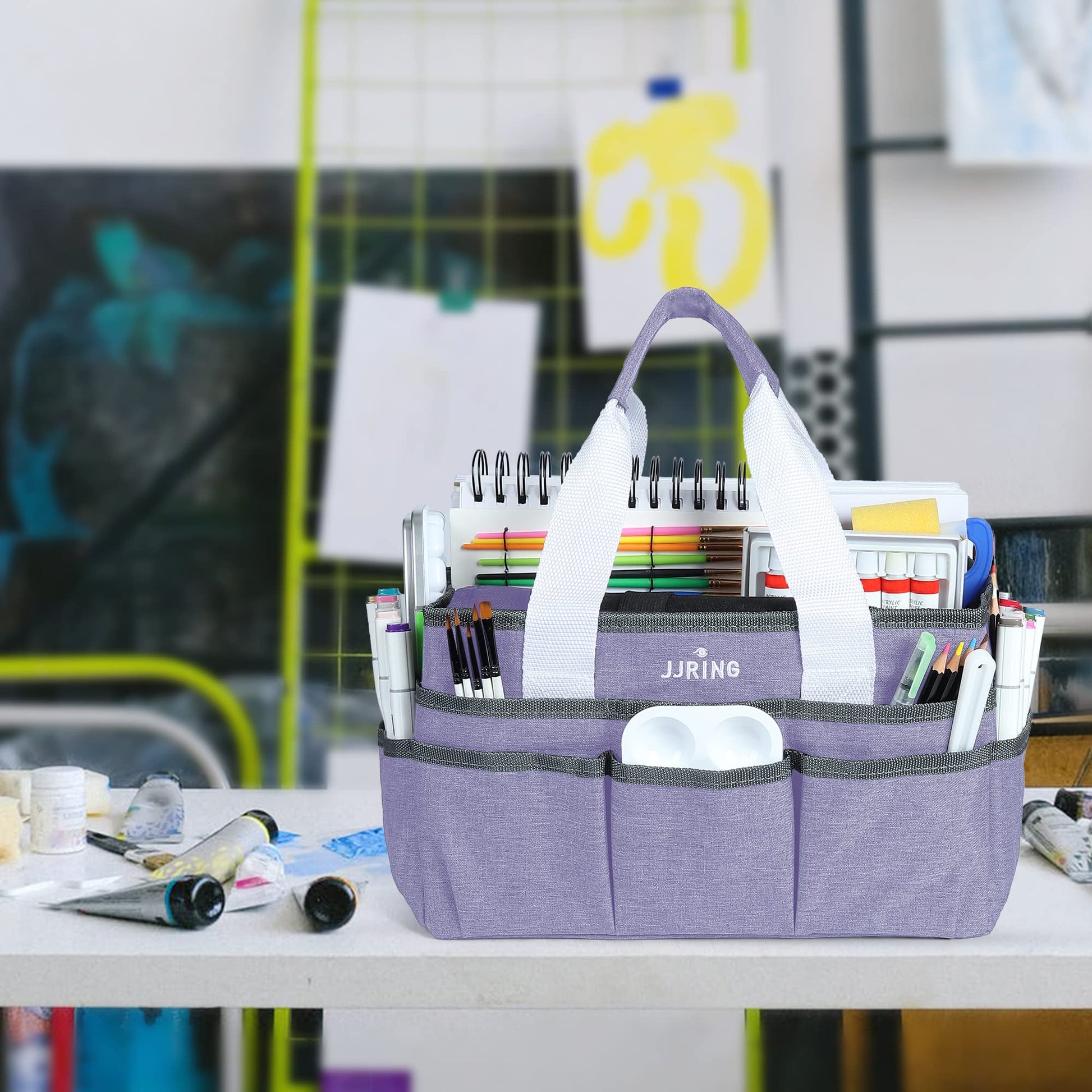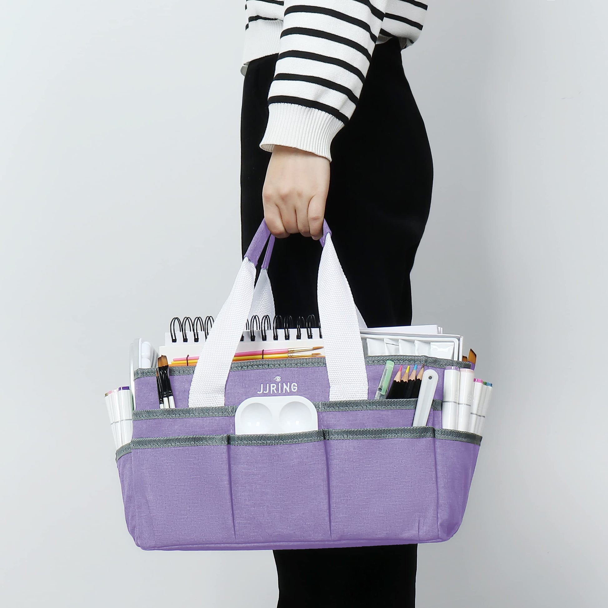 Craft Organizer Tote Bag, Art Storage Caddy with Multiple Pockets, Lilac Sewing Bag for Art, Craft, Scrapbooking, Medical, and Office Supplies Storage