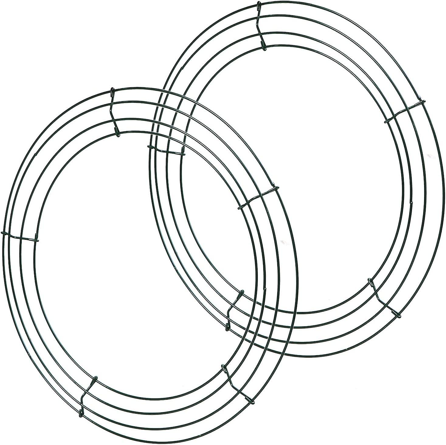 Details: Specifications: Size: 14 inches, 12 inches Color: Dark Green Material Package includes: 5 Pieces of 14" and 12" wire wreath frame Quantity: 5 Package