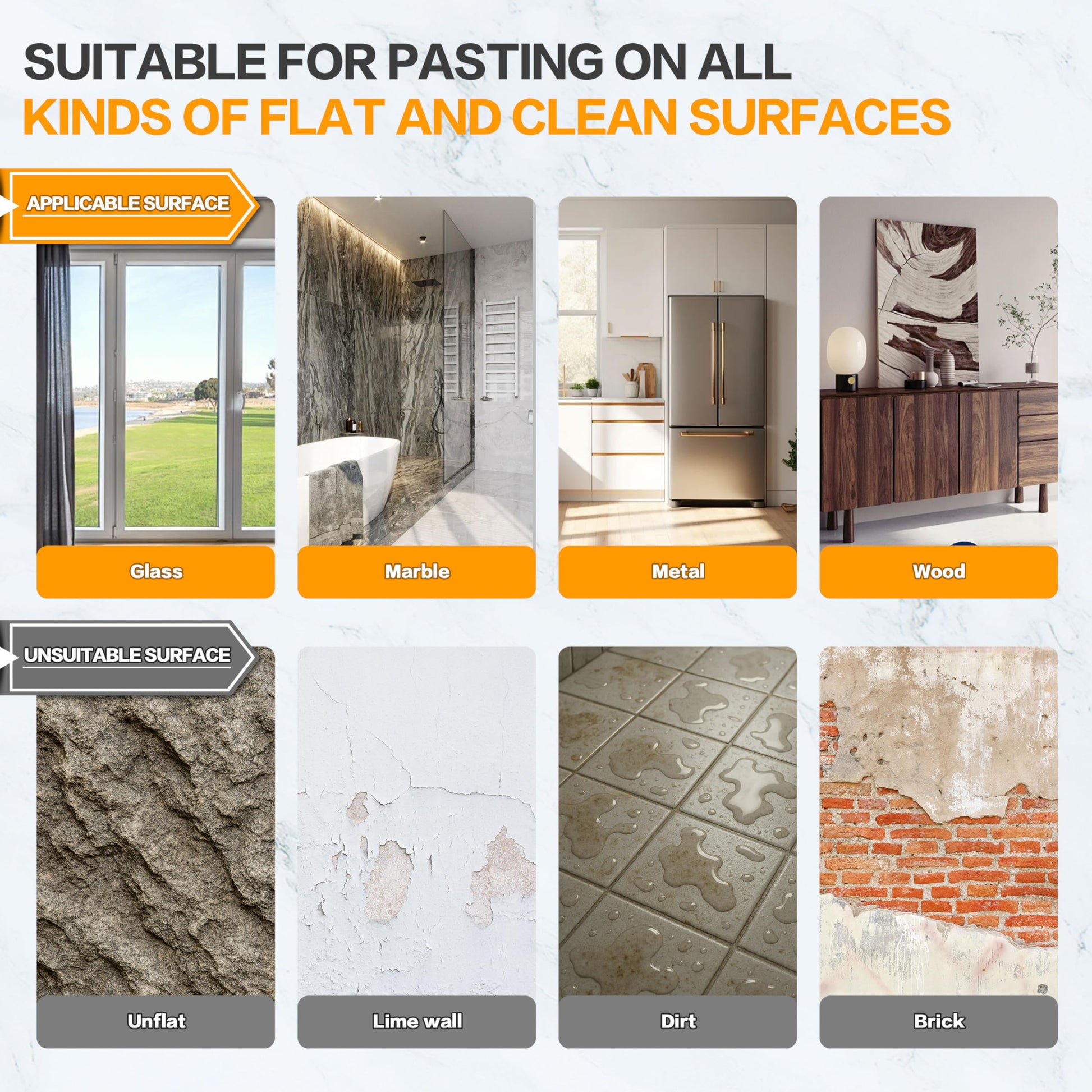 - 【 Multi-Functional Traceless Tape 】 Our strips or dots don't leave adhesive on the surface, they are ideal for use on various flat surfaces, such as glass, metal sheet, plastic, wood, carpet, wall