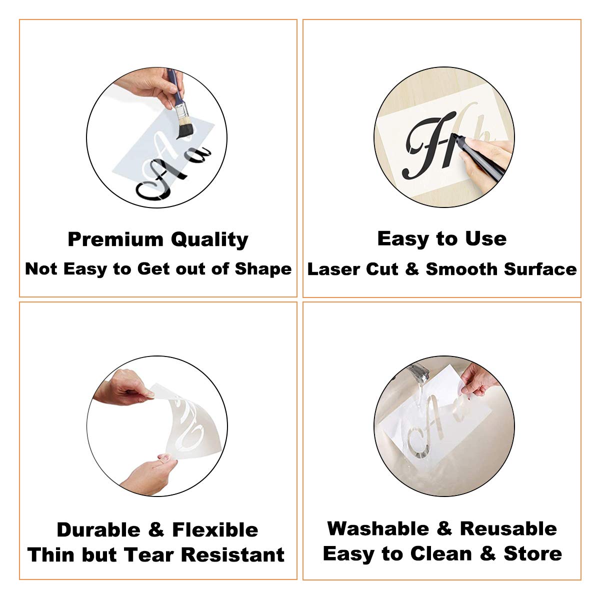 - ★ PREMIUM QUALITY: All stencil templates are cut from premium quality 10 mil mylar sheets to ensure their flexibility and durability, and will not break or deteriorate easily. They are Eco friendly, Laser cut, no sharp edges, safe for children, so you can have fun and create your art projects without any worries.