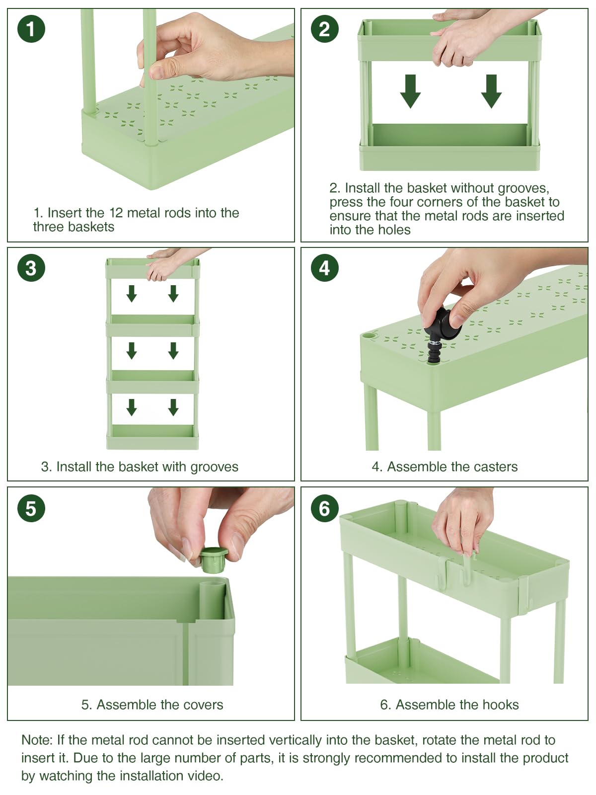 - Sturdy and Durable: The rolling organizer cart is made of high-quality metal tubes and thickened plastic material. Every shelve has high guardrails on all sides to keep the shampoo, conditioner, soap and other items inside in place and prevent them from falling. The whole slim rolling storage cart can hold 35LB in total, please note that the lower layer should bear more weight than the upper layer to ensure the stability.