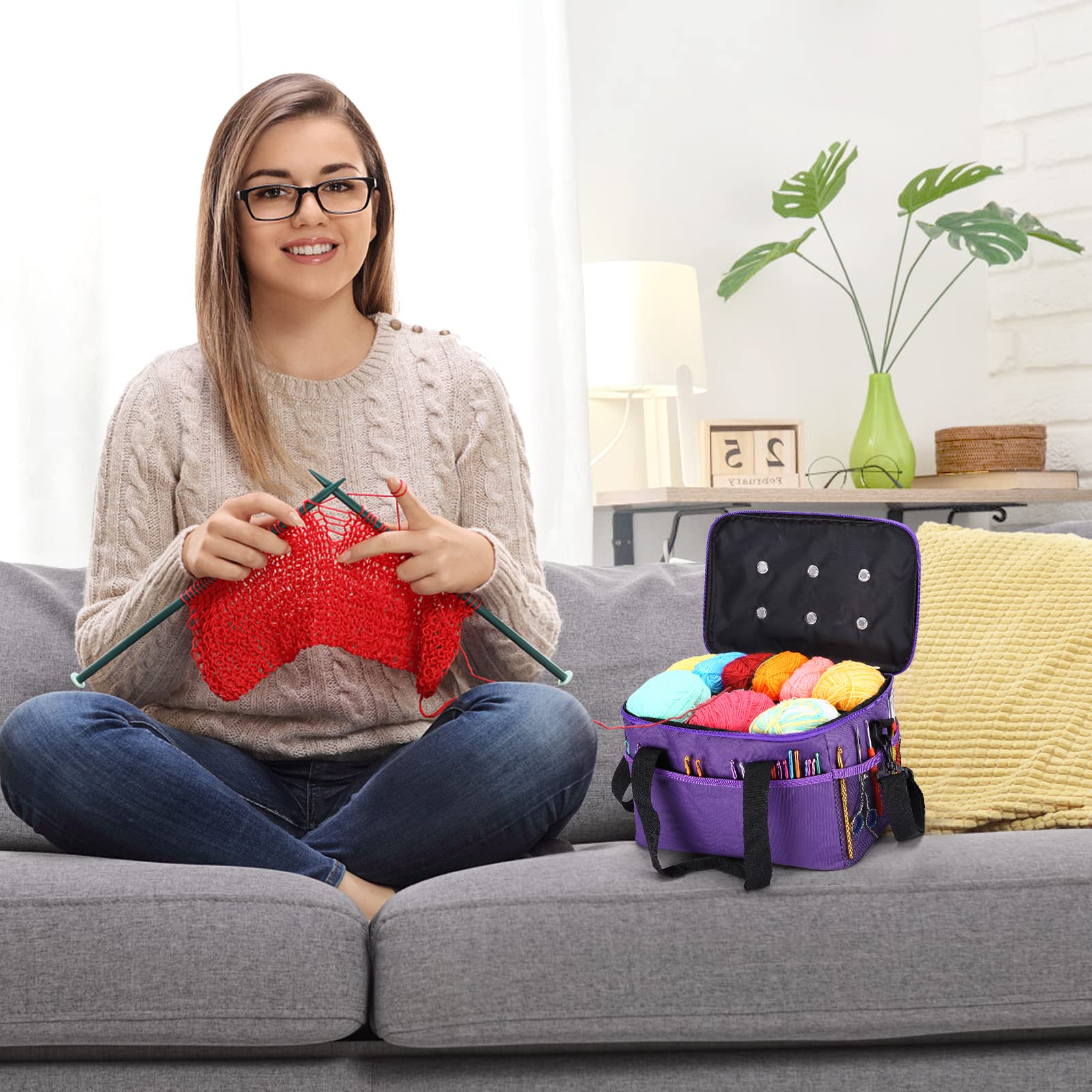 Crochet Bag for Beginners, High Capacity Yarn Totes Organizer with Inner Divider Portable for Crochet Hooks, Knitting Needles, Project and Supplies, Purple