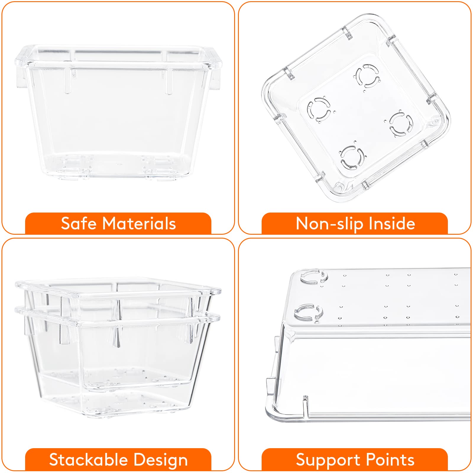 - 4 Different Size Combinations: One set includes 25 pcs storage bins in 4 different sizes, allowing you to customize in different combinations for storing your items. Includes: 3" x 3" x 1.8" (8pcs), 6" x 3" x 1.8" (8pcs), 9" x 3" x 1.8" (6pcs), 9" x 6" x 1.8" (3pcs).
