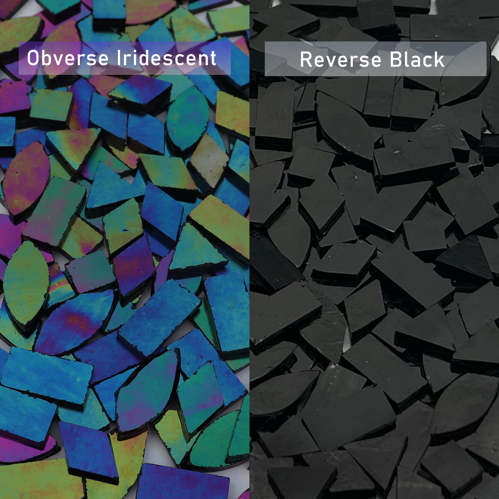Iridescent Glass Mosaic Tiles for Crafts, 240 Pieces 5 Shapes Mixed Stained Glass Sheets, Mosaic Kits for Adults (Iridescent Black)