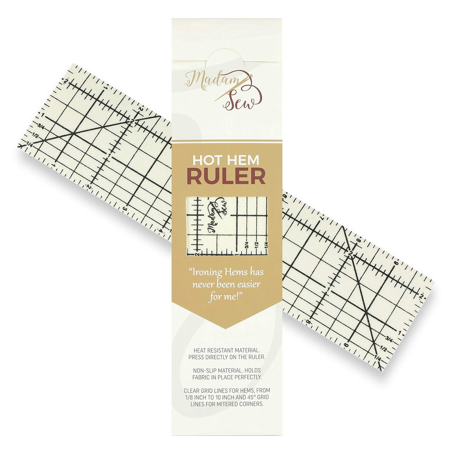 Hot Hem Ruler for Quilting and Sewing – Non-Slip Hot Ironing Ruler and Pleats with Dry or Steam Iron on Quilt Blocks and Clothes - 10" x 2.5"