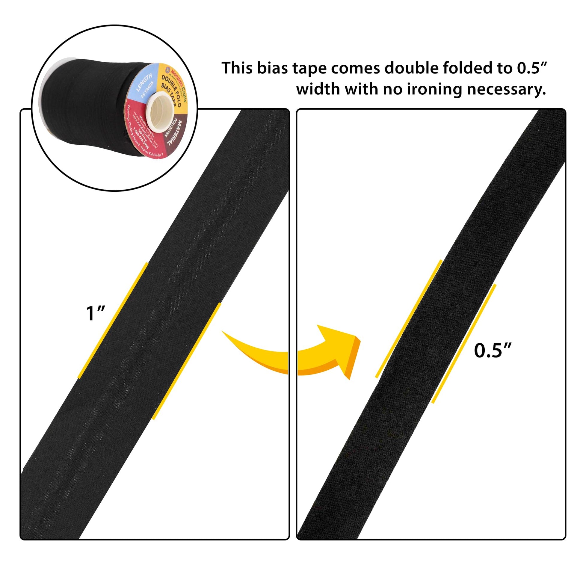 - Easy to Sew Non-stretch Double Binding Tape for Sewing by Hand or Machine: The wide 1/2 bias tapes match cotton, polyester, fleece, leather, denim, canvas, and linen. The flexible bias fold tape creates straight or curved fabric edging without puckering.