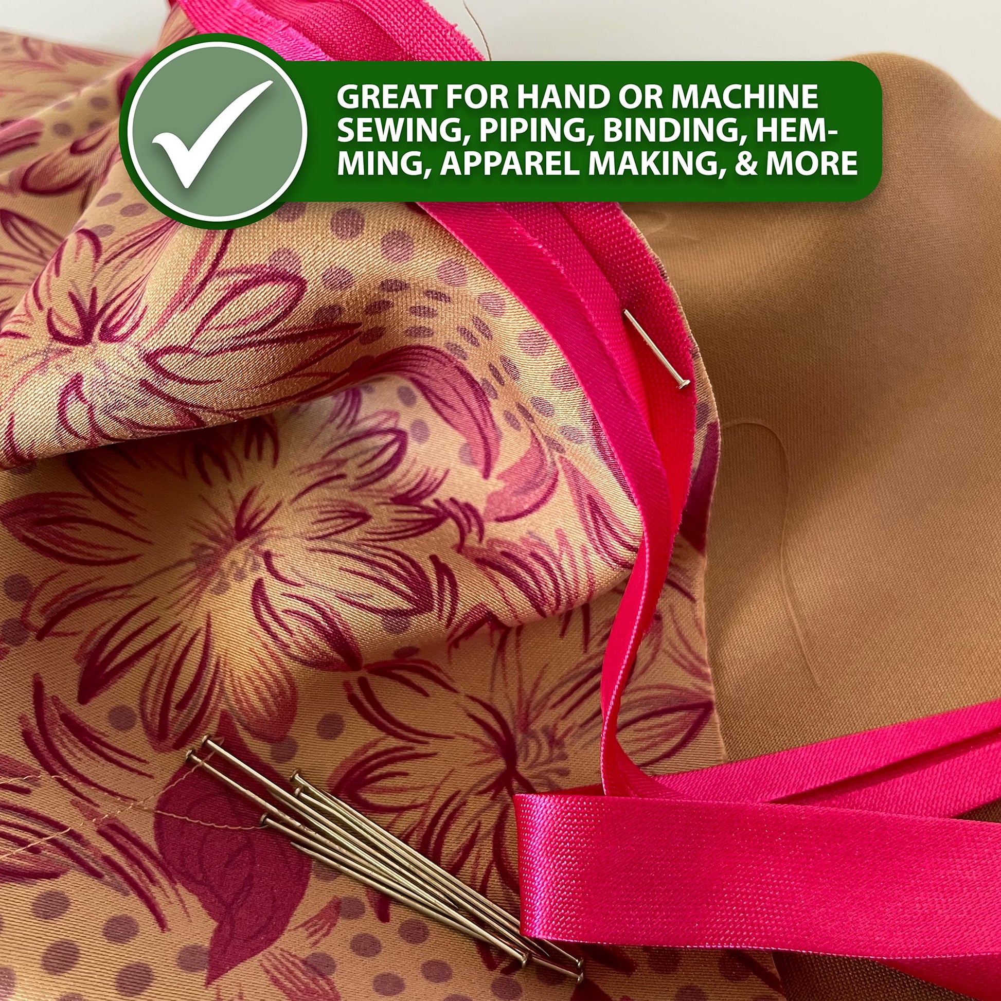 - Edging Fabric Bias Tape: Our polyester double bias tape or cinta bies de tela holds shape better than cotton bias tape and has no sheen like satin bias tape & silk bias tape. The colorfast thin bias tape is washable, and makes the perfect flat bias tape sewing trim.