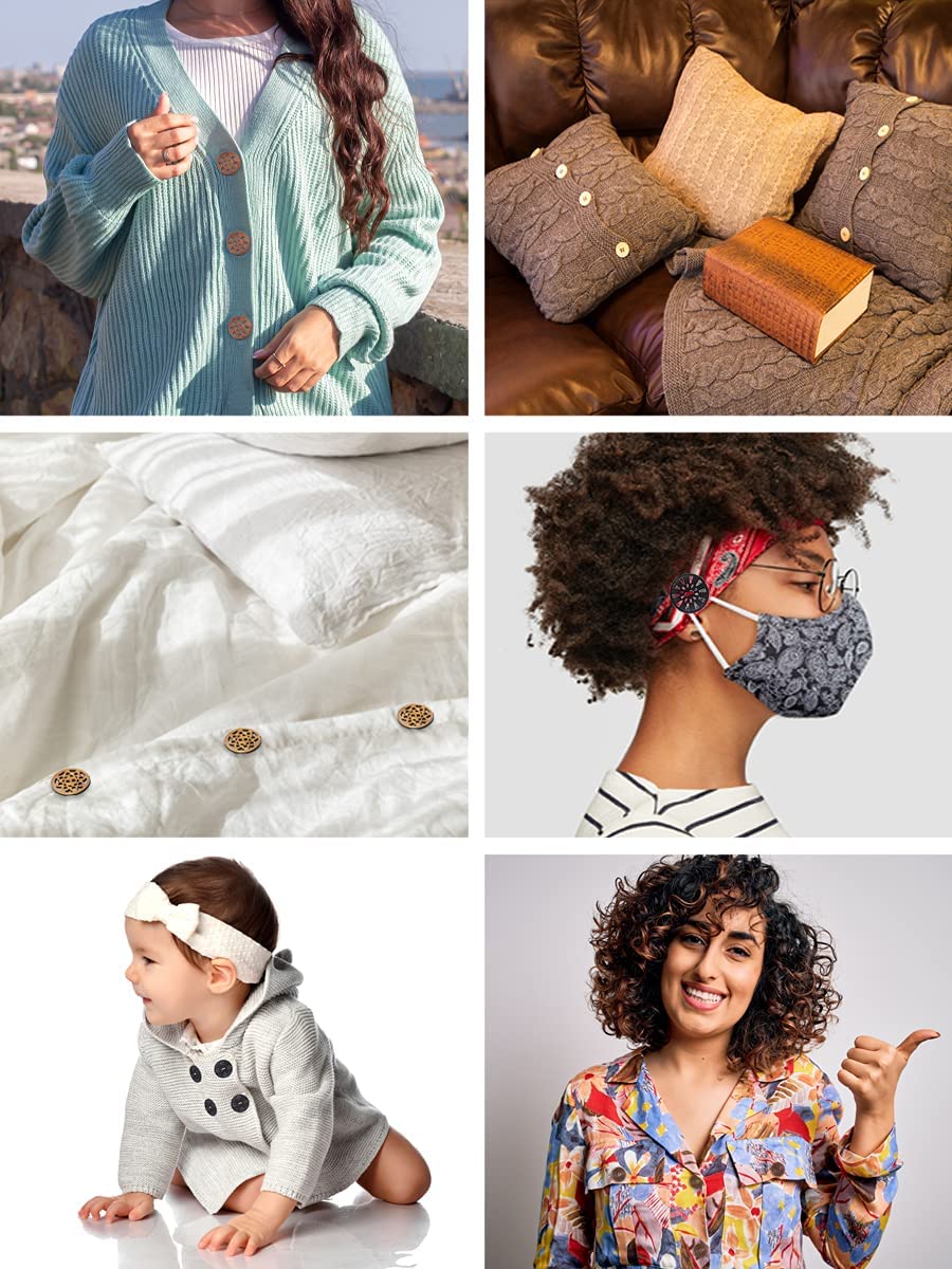 - Fancy Buttons for Sewing: The hippie buttons for clothes are perfect wooden buttons for coats, shirts, jackets, purses, hats, scarves, mittens, jeans, gloves, beanies, & bags, Boho buttons for sweaters, or decorative upholstery buttons for pillows & throw blankets.