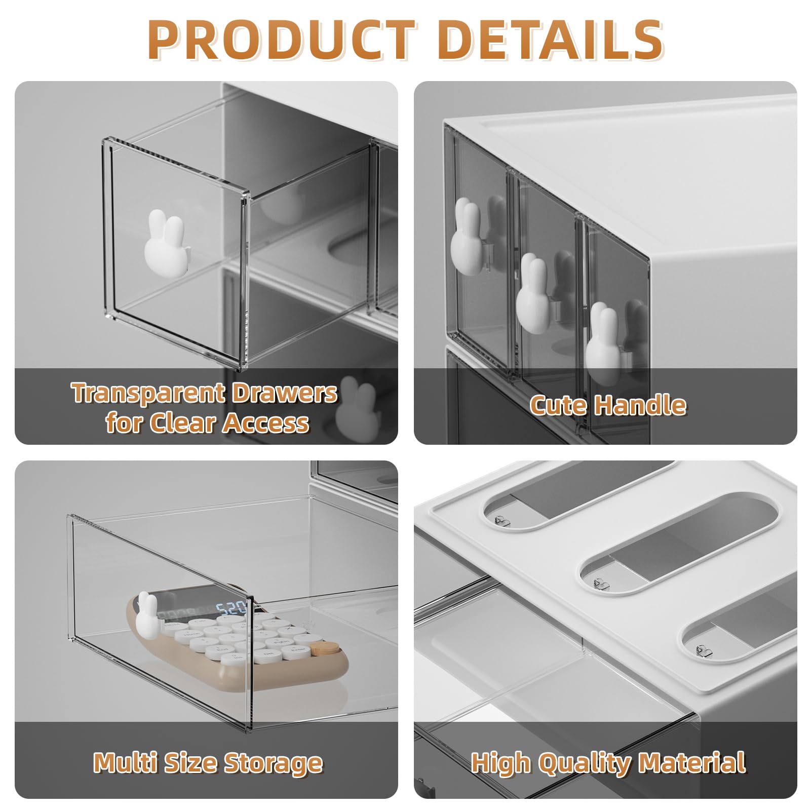 - 【Maximize Your Space】: The 3-tier stackable drawer storage box with 6 drawers keeps your desk or vanity clutter-free.This desk organizer is perfect for storing your daily essentials, cosmetics, and office supplies.