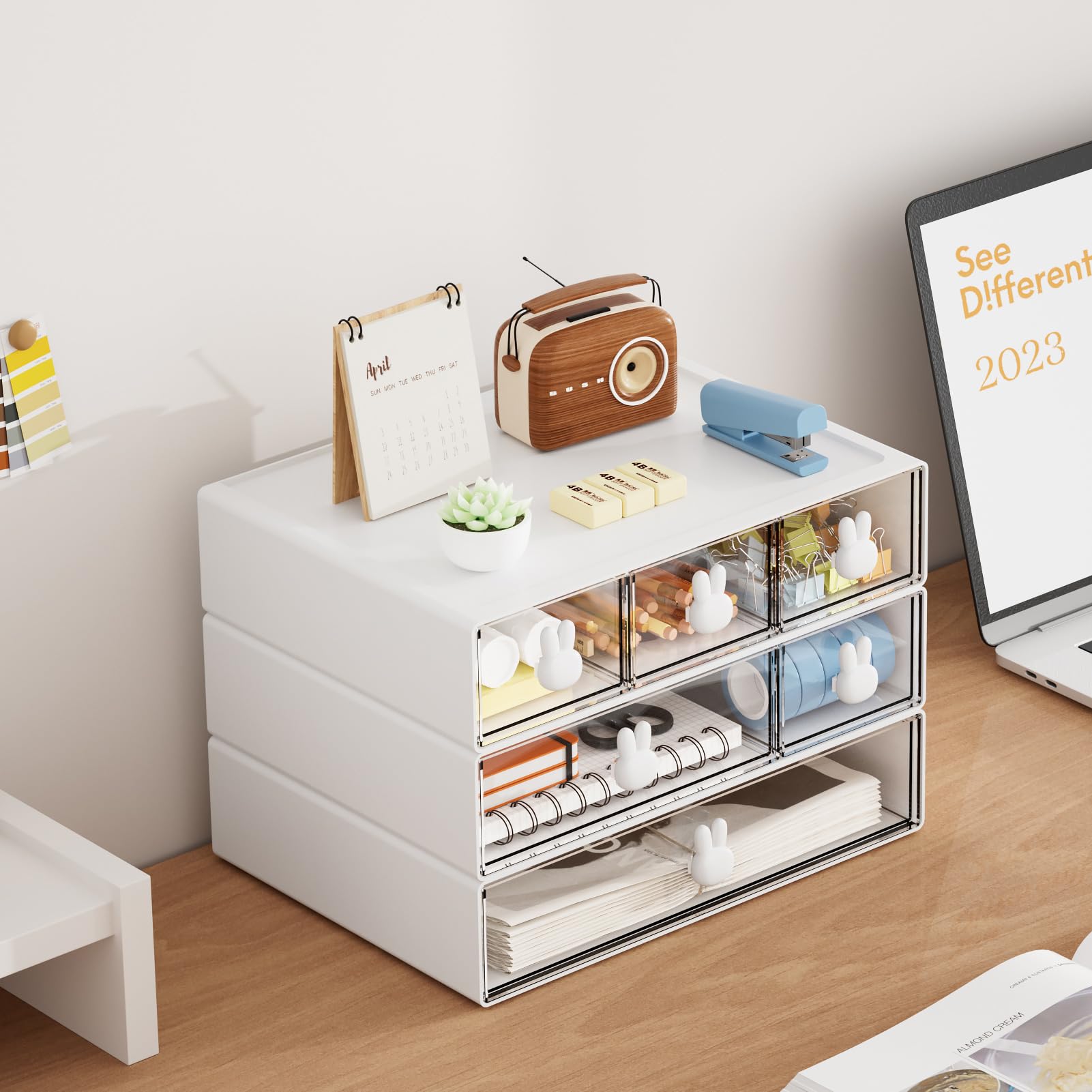 - 【Stackable Design】:The desk organization are designed to stack securely, allowing you to customize your storage in any way you want. You can effectively use vertical space by stacking drawers together. Stack multiple drawer units to customize your storage space.