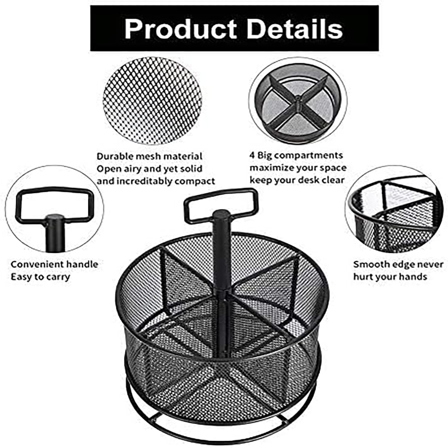 Mesh Desk Organizer, 360-Degree Rotating Multi-Functional Pen Holder, 4 Compartments Desktop Stationary Organizer, Home Office Art Supply Storage Box Caddy (Black)