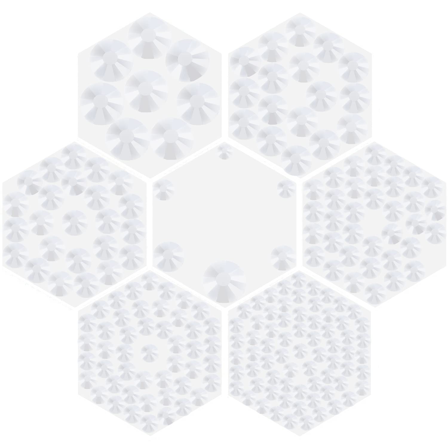 - 6 Sizes: SS6, SS10, SS12, SS16, SS20, SS30; Color: Clear Crystal; 6 Grids per size