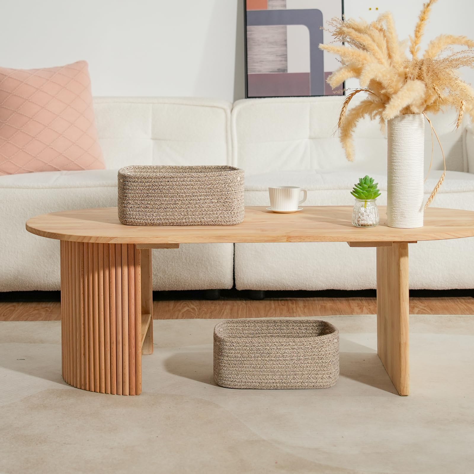 3-Pcs Shelf Baskets for Organizing | Storage Basket for Shelves | Small Woven Baskets | Rope Toy Basket | Closet Organizer Bins | Cube Decorative Box | 11.8×7.8×5.1” | Mixed brown