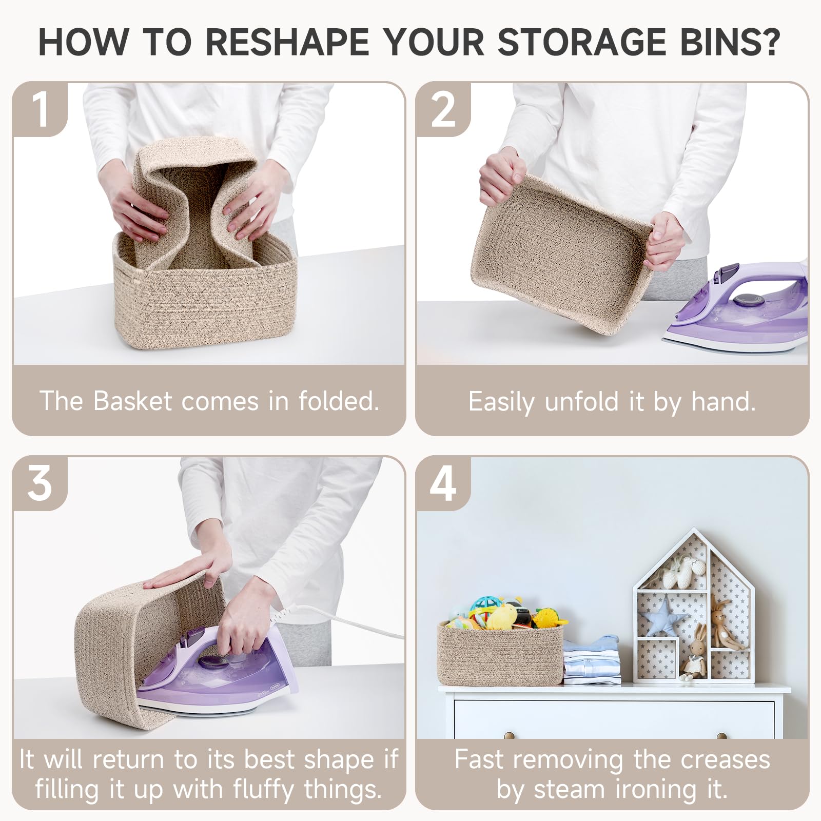 - 【Home Storage】We specially selected classic colors for these rope basket bins. Our rope baskets can be used as fabric baskets and look great in any room. This cube rope storage basket will enhance any room or decor in your home.